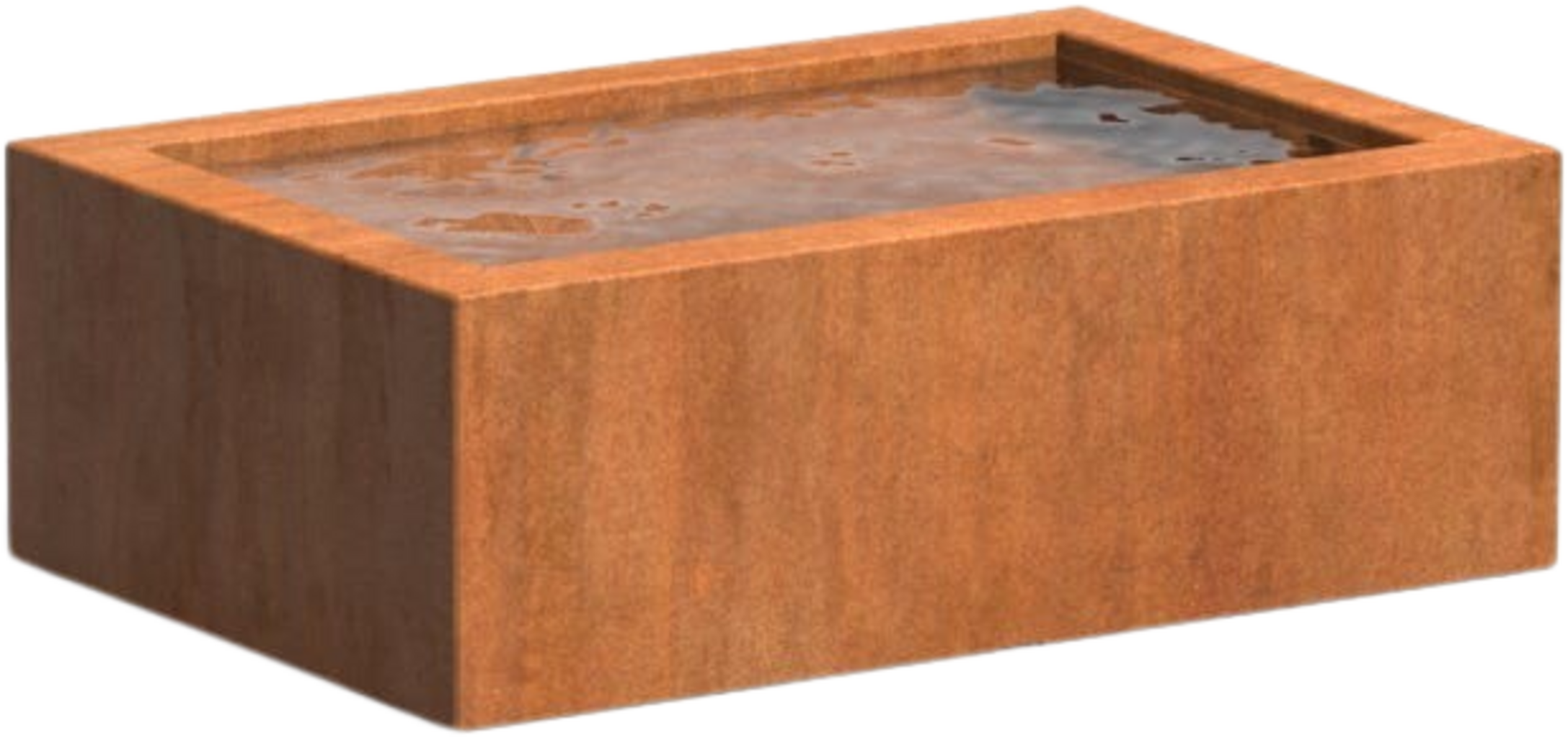 Posoda za ribnik iz jekla Corten je idealna za vključitev elementa vode na vrt ali teraso. Posodo iz trpežnega jekla Corten lahko brez posebnega truda postavite na ravno površino. Ribnik postane prav posebna paša za oči, ko ga napolnite z vodnimi rastlinami po vaši izbiri.