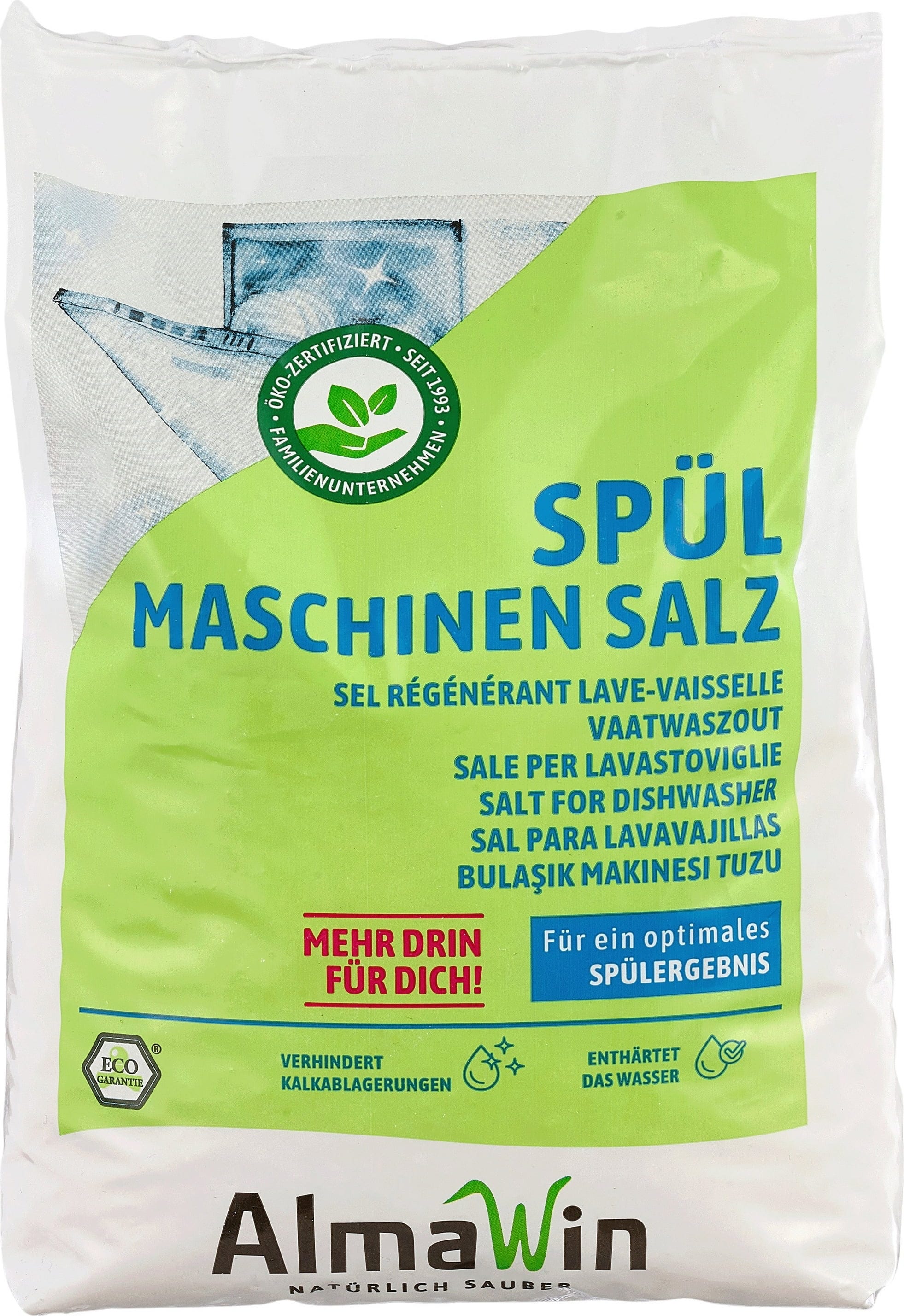 Sol za pomivalni stroj iz skupine Almawin nudi popolno zaščito pred vodnim kamnom za vse gospodinjske pomivalne stroje. Sol je pakirana v 2 kg vrečki in poskrbi za čisto in sijočo se posodo.