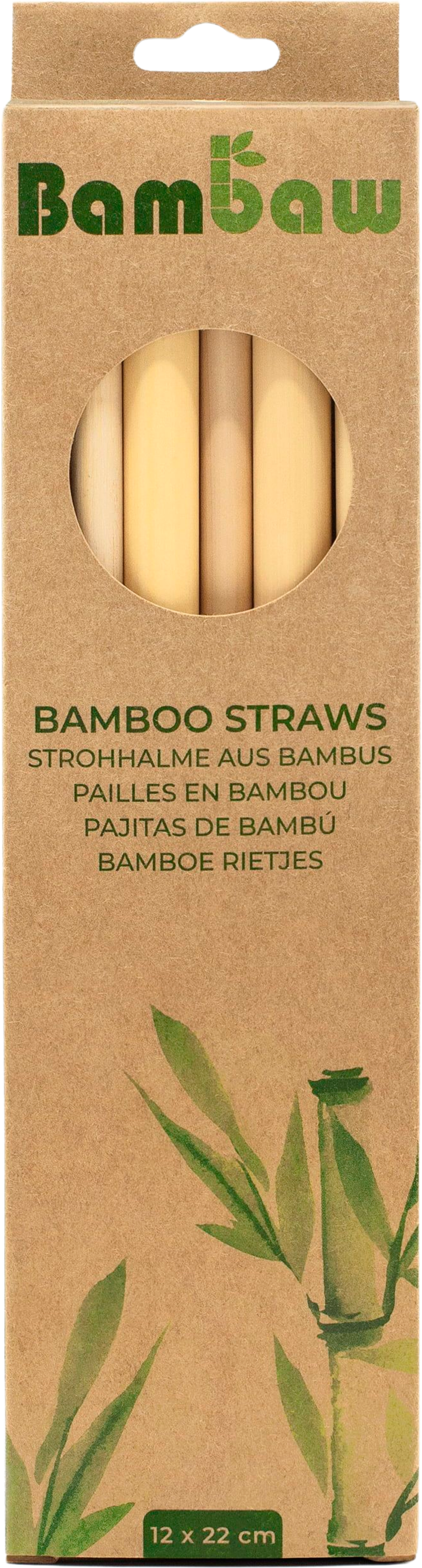 Pakiranje vsebuje ročno izdelane slamice iz bambusa. Slamice so naoljene in so izredno odporne. Po uporabi jih lahko enostavno očistite s priloženo krtačko in/ali jih umite v pomivalnem stroju. Popolno naravne in biološko razgradljive.