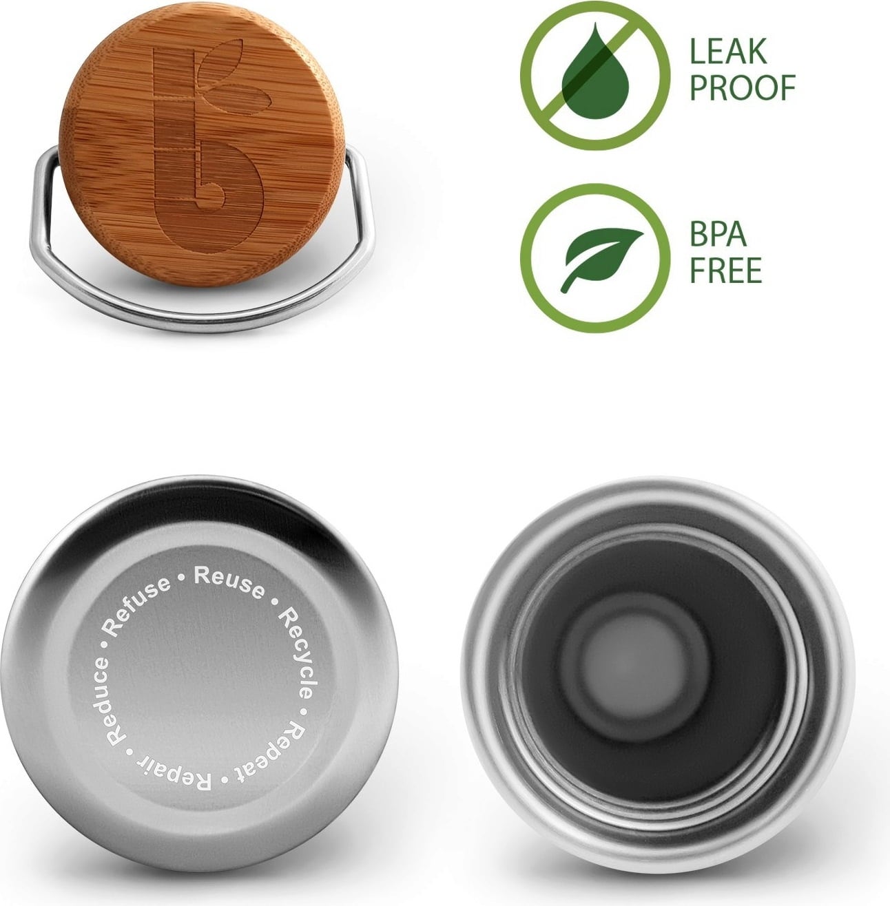 Ta steklenička je popoln spremljevalec za vsakdanje življenje! Pri športu, v pisarni, v šoli ali na pohodu. Izdelana je iz nerjavečega jekla, ima nepropusten navojni pokrovček iz bambusa ter se ponaša z brezčasnim in preprostim dizajnom. Steklenička ne vsebuje škodljivih kemikalij in jo lahko po uporabi preprosto očistite s krtačko za stekleničko.