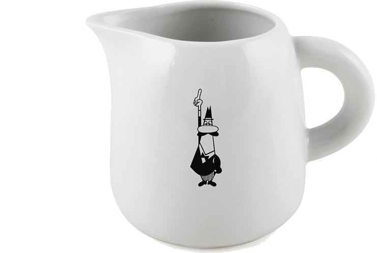 Vrč za mleko z ikonično figuro znamke Bialetti je izdelan iz visokokakovostnega porcelana in se zaradi svoje elegantno preproste oblike lahko kombinira z vsemi seti skodelic za kavo.