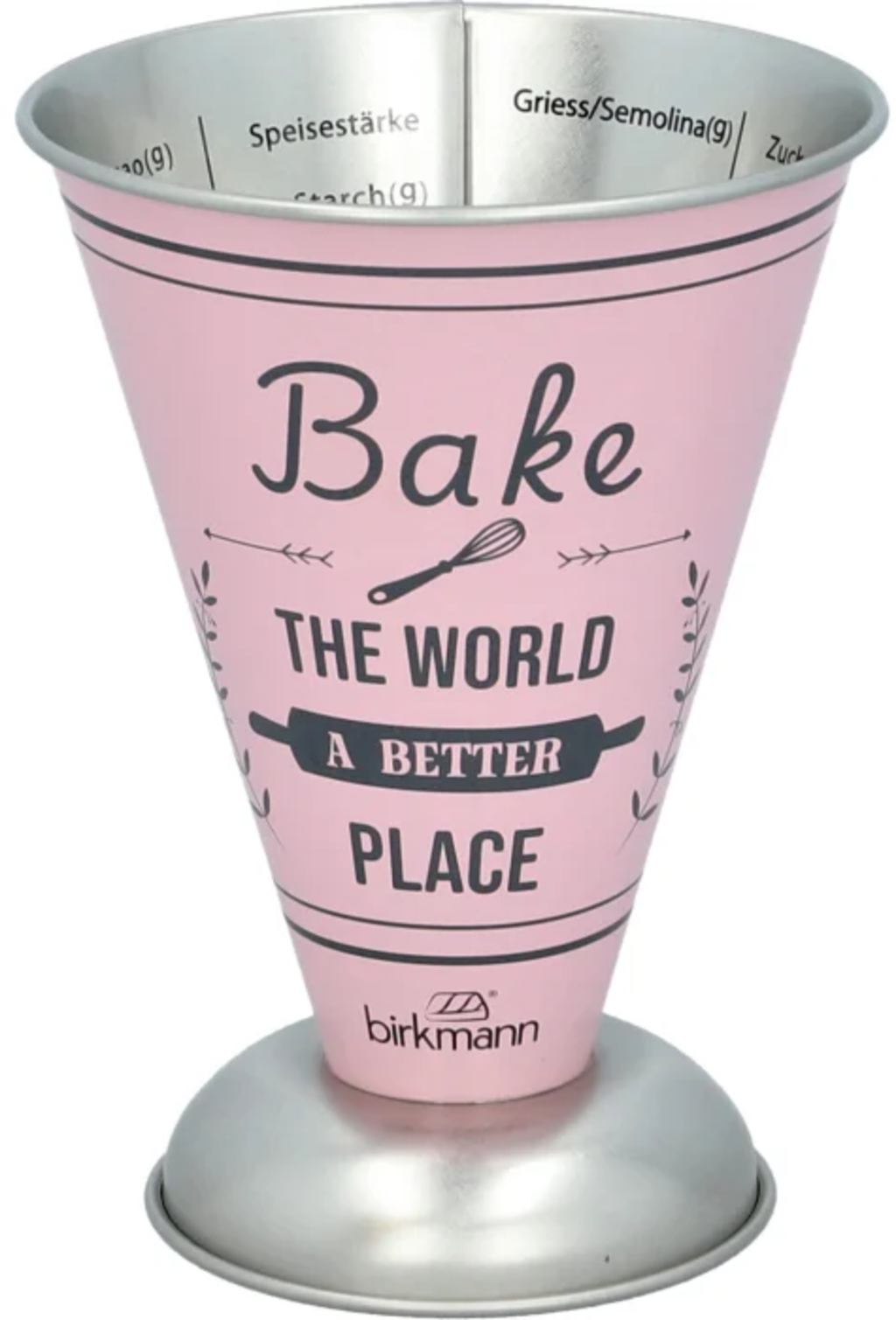 Colour Kitchen merilni lonček znamke Birkmann združuje robustno obliko in praktično funkcionalnost. Izdelan je iz nerjaveče pločevine in je popoln kuhinjski pripomoček za vse, ki cenijo natančnost pri peki in kuhanju.