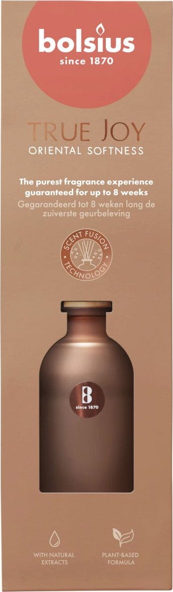 True Joy dišava za prostore znamke Bolsius do 8 tednov oddaja nežen vonj v vašem bivalnem prostoru in zagotavlja dolgotrajno prijetno vzdušje. Izberite svojo najljubšo dišavo in očarajte svoje goste v preddverju ali ustvarite edinstvene dišeče trenutke v dnevni sobi in kopalnici.