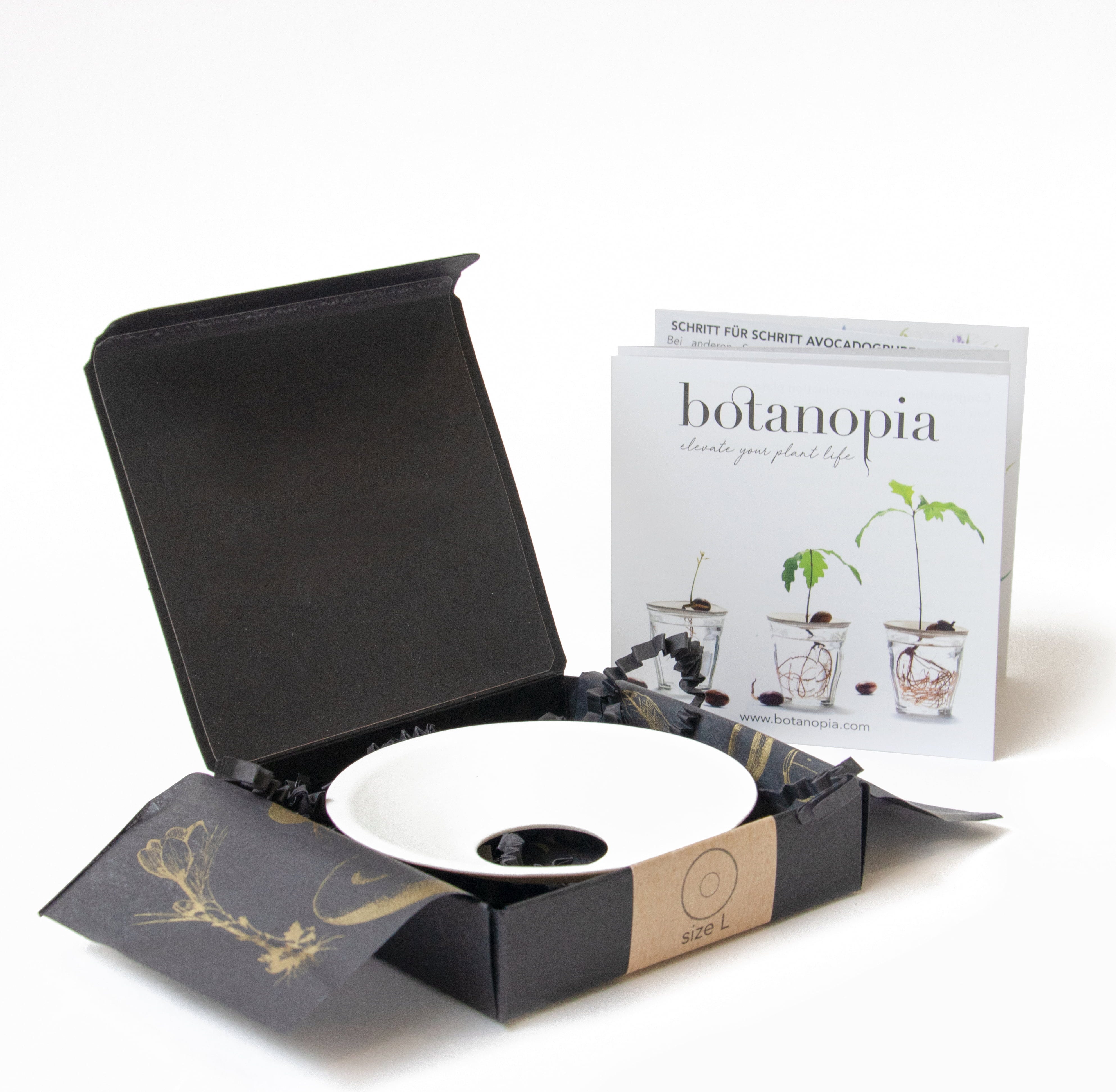 Ta kalilna plošča iz finega porcelana je še posebej eleganten pripomoček za gojenje in ni le praktična, ampak tudi edinstveno okrasna. Združuje obliko in funkcijo na popolnoma novem nivoju in izpolnjuje tudi najvišje zahteve glede estetike in kakovosti. V povezavi s kozarcem vam omogoča tudi opazovanje kaljenja semen. Ta kalilna plošča je tudi izjemno presenečenje kot darilo za ljubitelje rastlin in prihaja k vam že zapakirana v elegantni črno-zlati škatli.