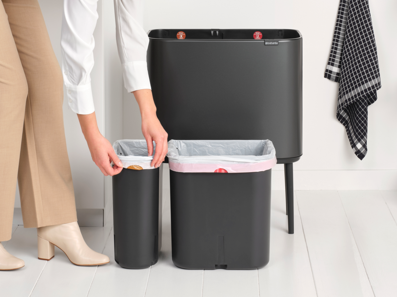 Iščete rešitev za ločevanje odpadkov? Bo Touch Bin združuje lep dizajn z vsem potrebnim lastnosti za enostavno ločevanje odpadkov. Ima dva vložka iz umetne mase za dve različni zvrsti odpadkov.