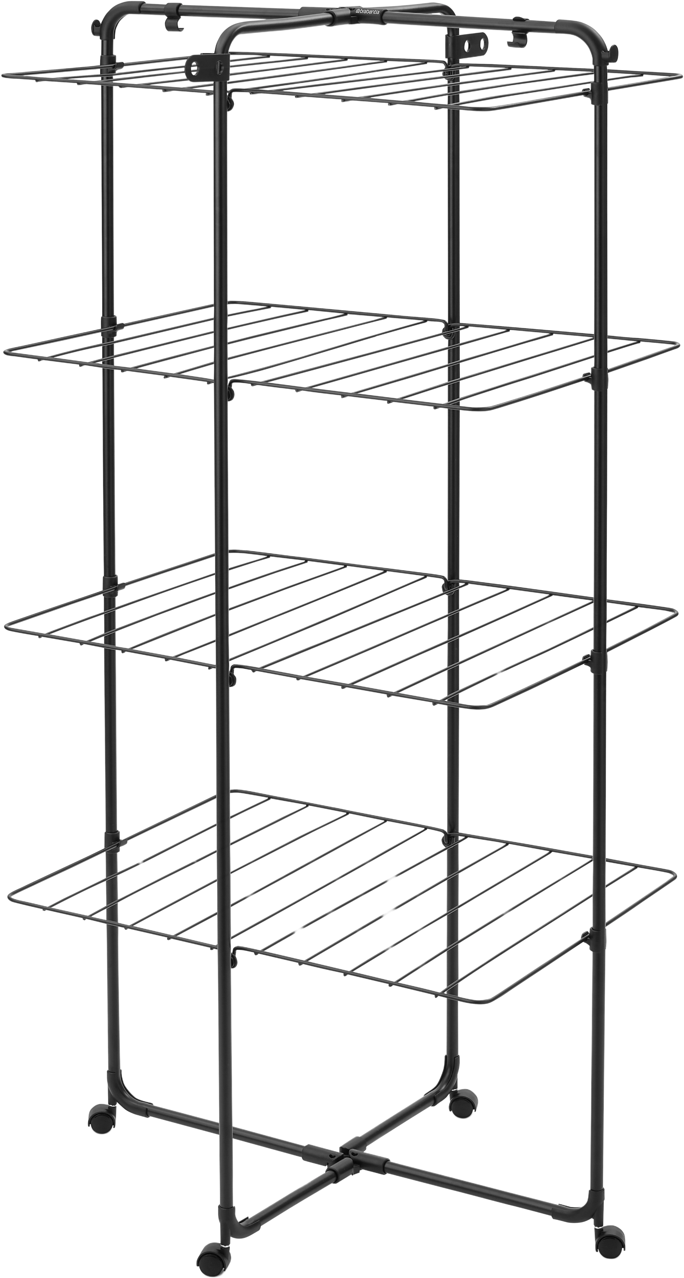 Stolp za sušenje perila HangOn na majhnem prostoru ponuja veliko prostora za sušenje. Z zmogljivostjo 30 metrov je idealen za velike količine perila, zahvaljujoč pametni zasnovi s kolesi pa ga je mogoče enostavno premakniti v kateri koli kot. Zaradi robustnega jeklenega okvirja je sušilni stolp trpežen in eleganten pripomoček za sušenje perila, ki se odlično prilega vsaki kuhinji, kopalnici, spalnici ali dnevni sobi.