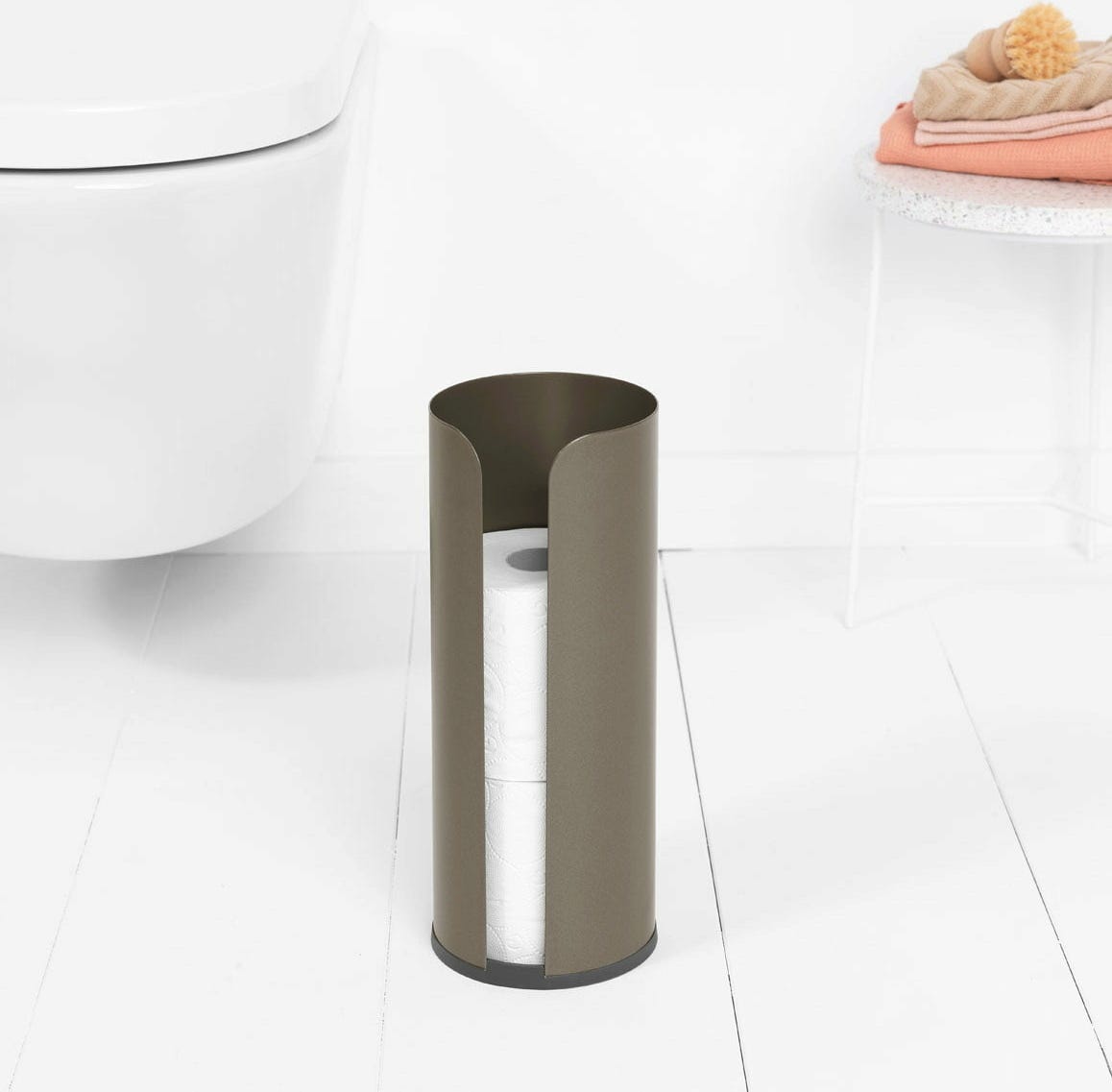 - Držalo za toaletni papir ščiti rolo pred prahom in omogoča lažje ločevanje papirja na roli