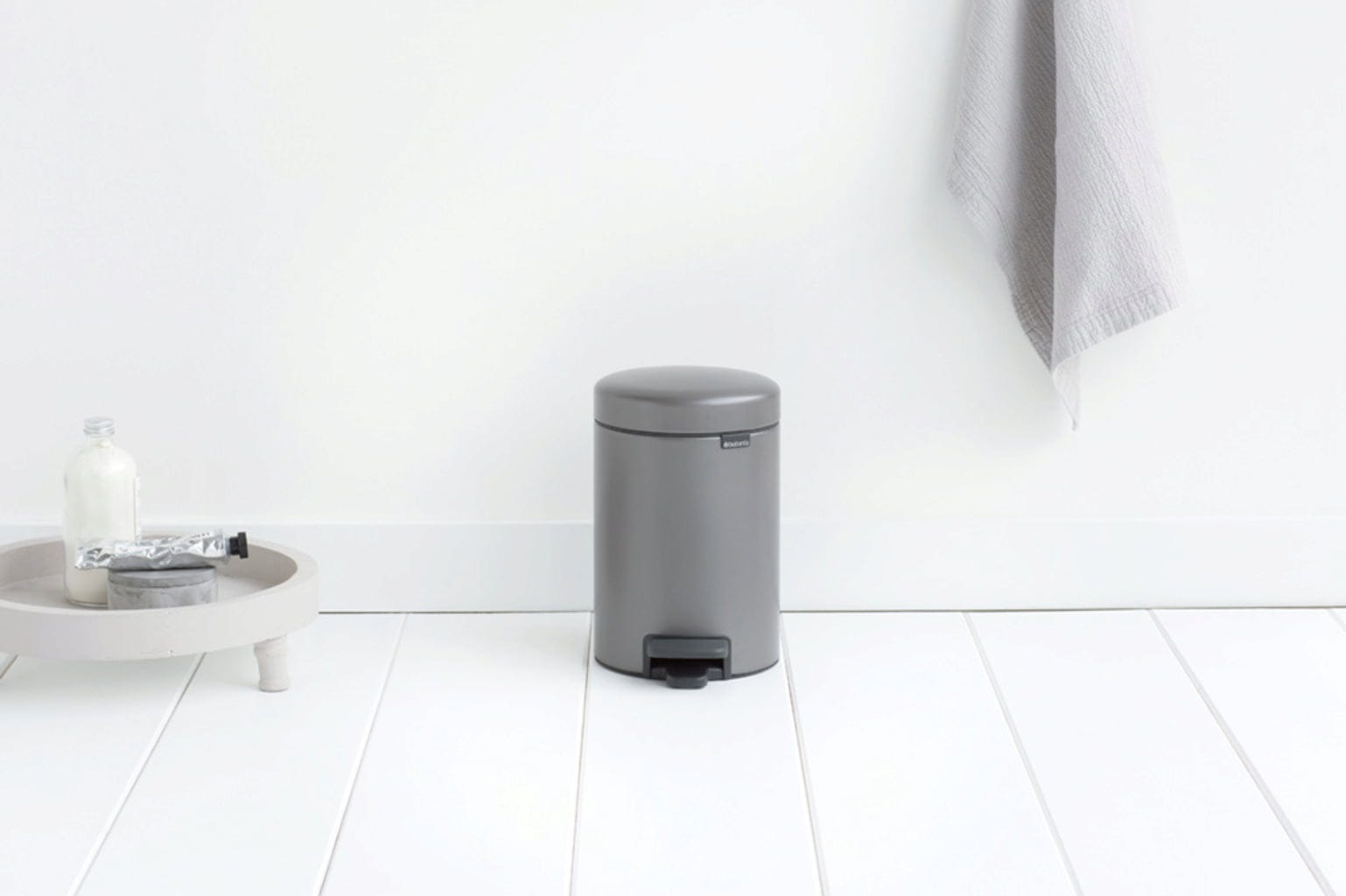 Koš za odpadke s pedalom je zaradi svoje kompaktne oblike idealen dodatek za v kopalnico ali WC. Poleg tega, da prihrani prostor, zaradi svoje oblike deluje zelo elegantno. Inovativna funkcija mehkega zapiranja zagotavlja nežno in tiho zapiranje, tesno prilegajoč pokrov pa preprečuje neprijetne vonjave.