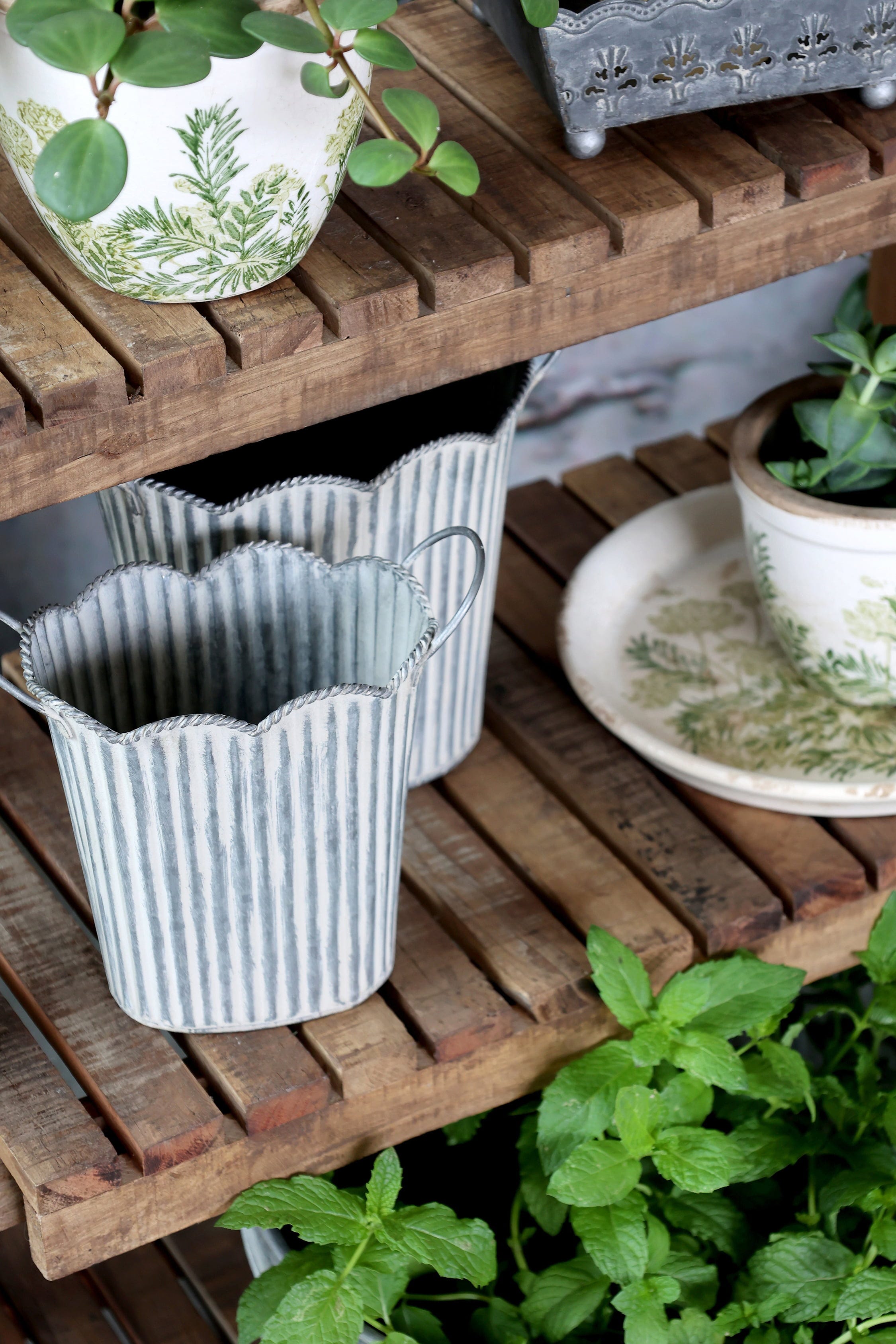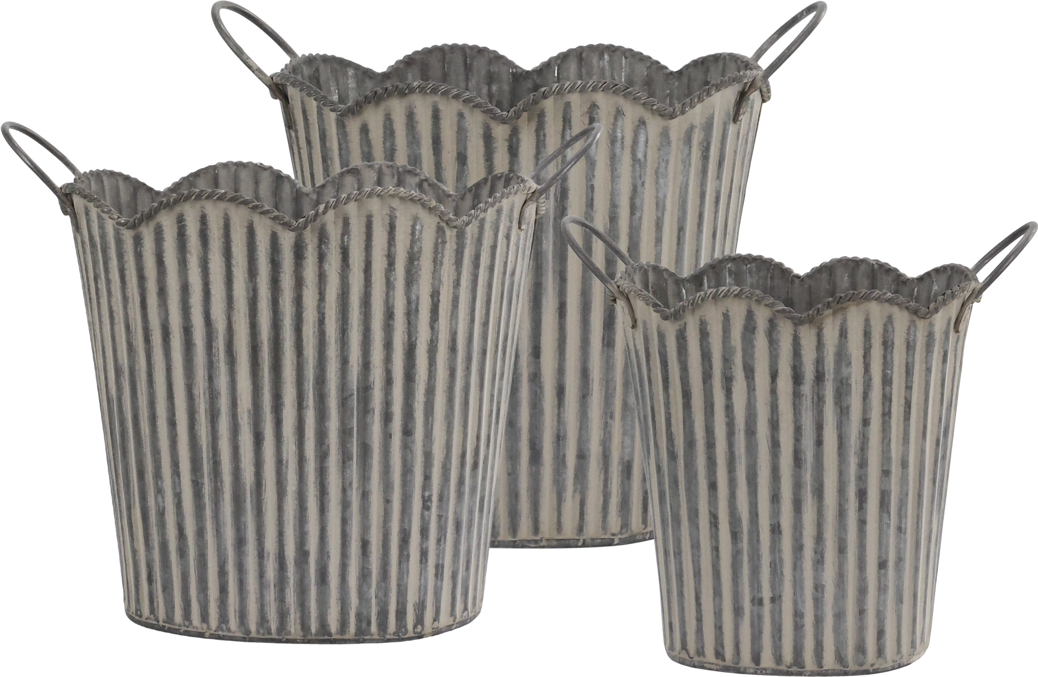 Chic Antique Komplet 3 okrasnih loncev z utori in ročaji, antični cink