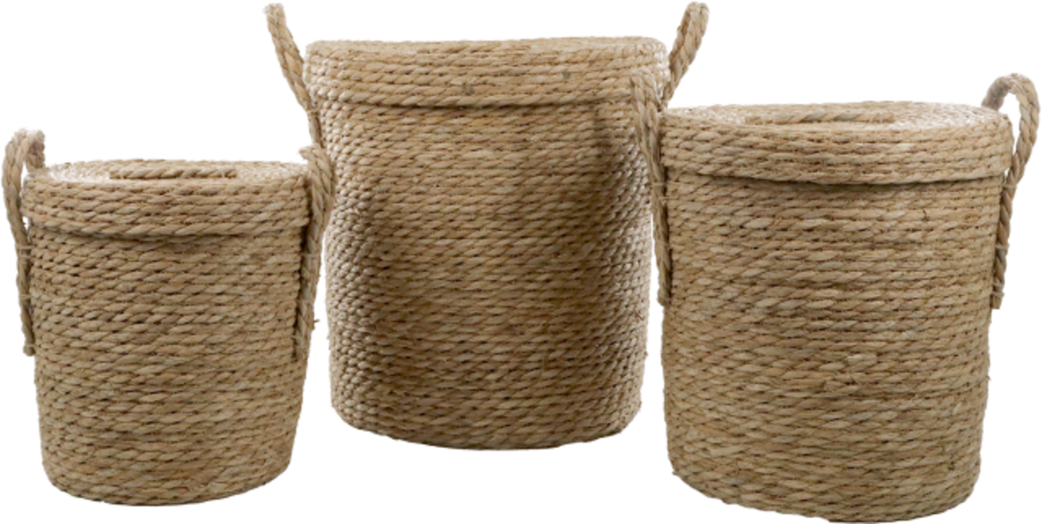 Naravno lep in vsestranski: ta set košar iz posušene trave v vaš dom vnese red in slog. Tri različne velikosti so idealne za shranjevanje od majhnih do velikih predmetov, ustrezni pokrovi pa vse lepo skrijejo. Odlična izbira za dnevno sobo, spalnico ali kopalnico.