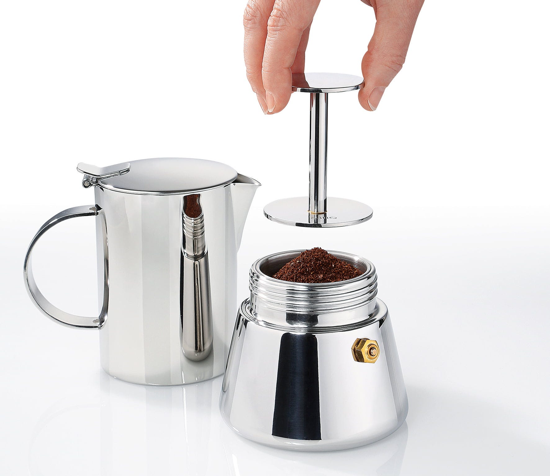 Osvojite umetnost priprave espressa s stiskalnico za espresso znamke cilio in izkusite razliko v vsaki skodelici kave. Enakomerno stiskanje mlete kave - tako imenovano tamponiranje - zagotavlja, da voda teče skozi prah z ustreznim uporom in da se optimalno izločijo dragocene arome.
