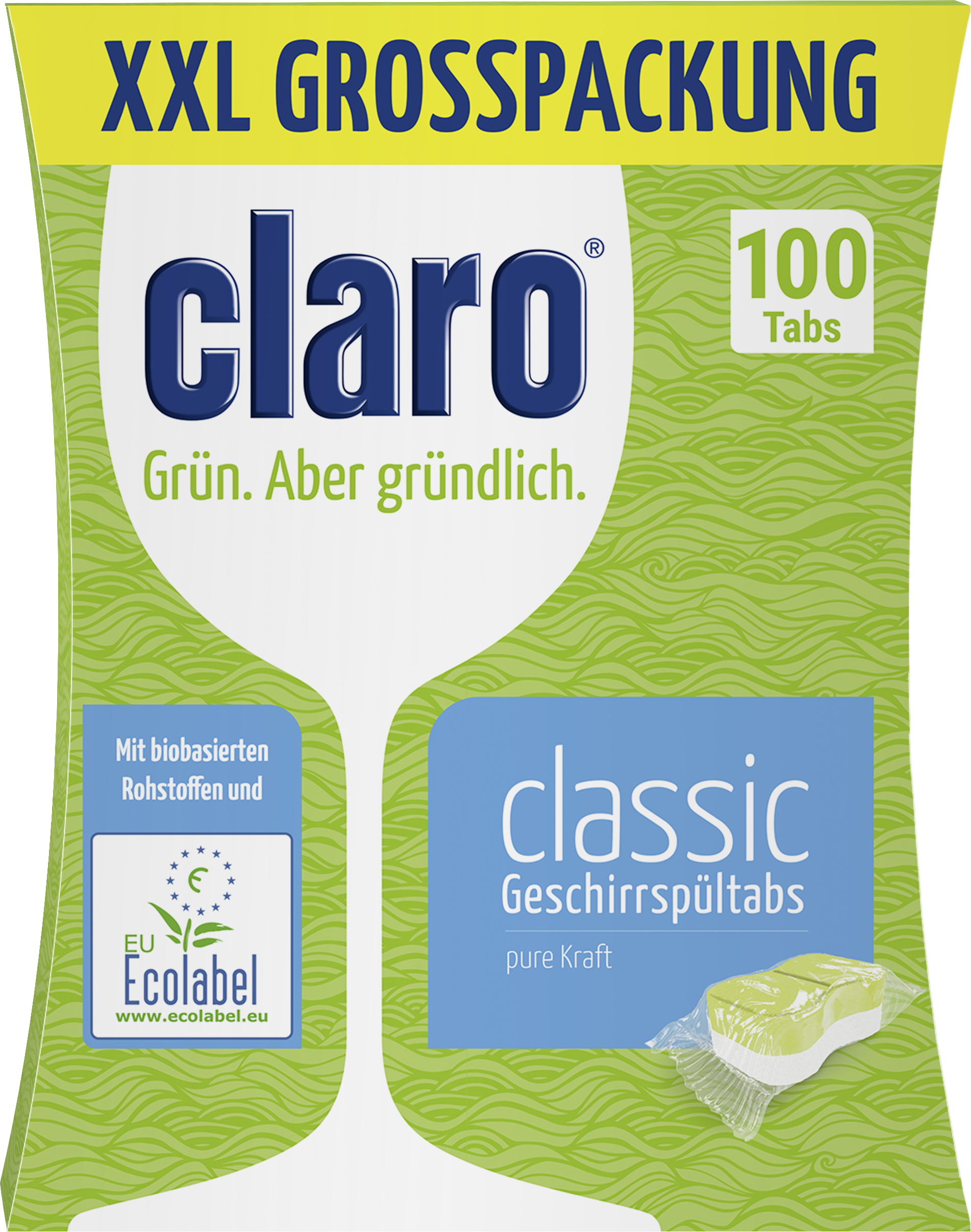 Klasične tablete Claro so zanesljivo sredstvo za umazano posodo in brez težav odstranijo tudi trdovratne, posušene ostanke hrane. Posamezno so pakirani v vodotopno folijo in postopoma razkrivajo svoj učinek med ciklom pranja. Tablete so zaradi učinka odstranjevanja skorje zelo močne proti umazaniji, zaradi zaščite za steklo in zaščite dekoracije pa so tudi nežne do posode. Nizkotemperaturni aktivator omogoča sijoče rezultate tudi pri nizkih temperaturah.