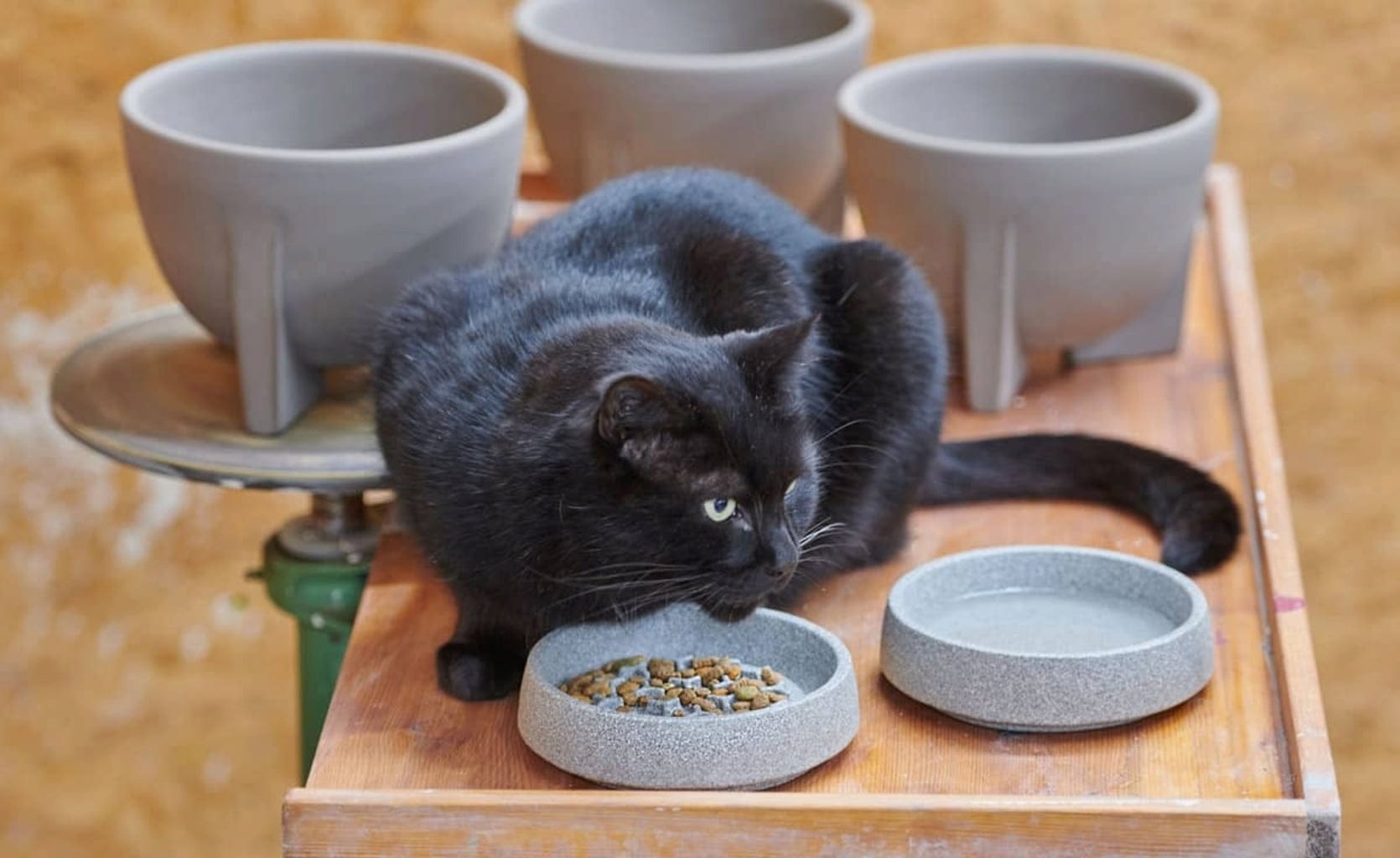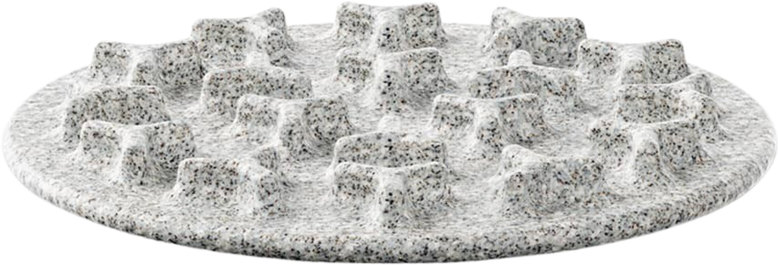 Popoln dodatek za posodo za mačke Granicium®. Vložek, narejen iz keramične ploščice z reliefnimi izboklinami, je v skledo nameščen brez pritrditve, kar upočasni hranjenje in prepreči goltanje. Na keramični ploščici si lahko mačka tudi očisti jezik.