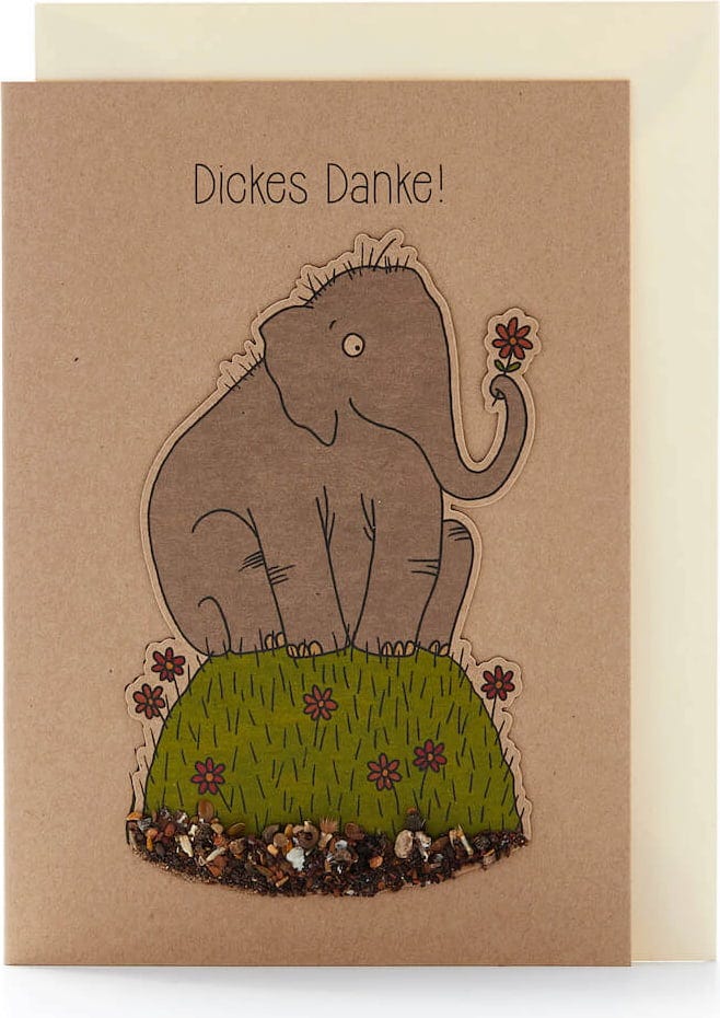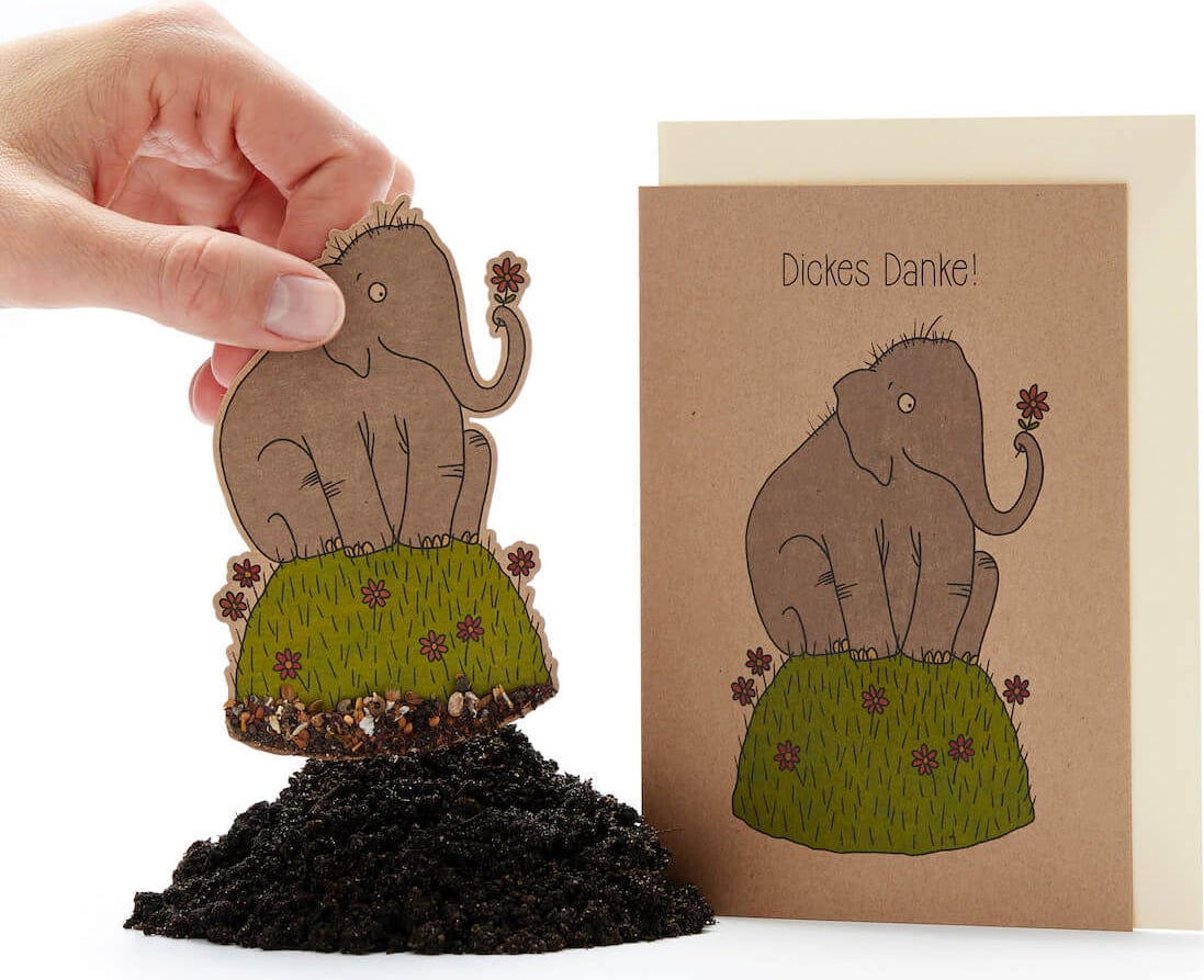 Če mora biti vaš "hvala" še posebej velik, je ta slon prav tisti, ki ga mora izročiti. K vam ne pride le s čudovito rožo v svojem rilcu, ampak tudi s pisanimi semeni divjih cvetov. Odlično pri tem: odstranite in posadite v zemljo, tako da prve nežne sadike divjih cvetov v kratkem času poženejo.