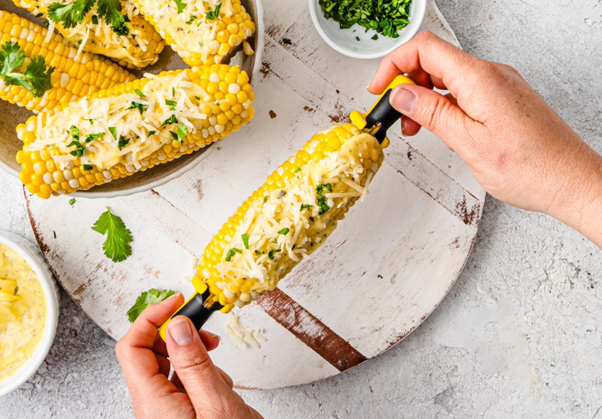 Inovativna držala za koruzne storže Lockorns znamke Dreamfarm so opremljena s tremi stabilnimi konicami iz nerjavečega jekla, ki jih zlahka zapičite v koruzni storž in s pomočjo intuitivnega zaklepnega mehanizma fiksno pritrdite – nič več majanja ali izpadanja, medtem ko uživate v hrani!