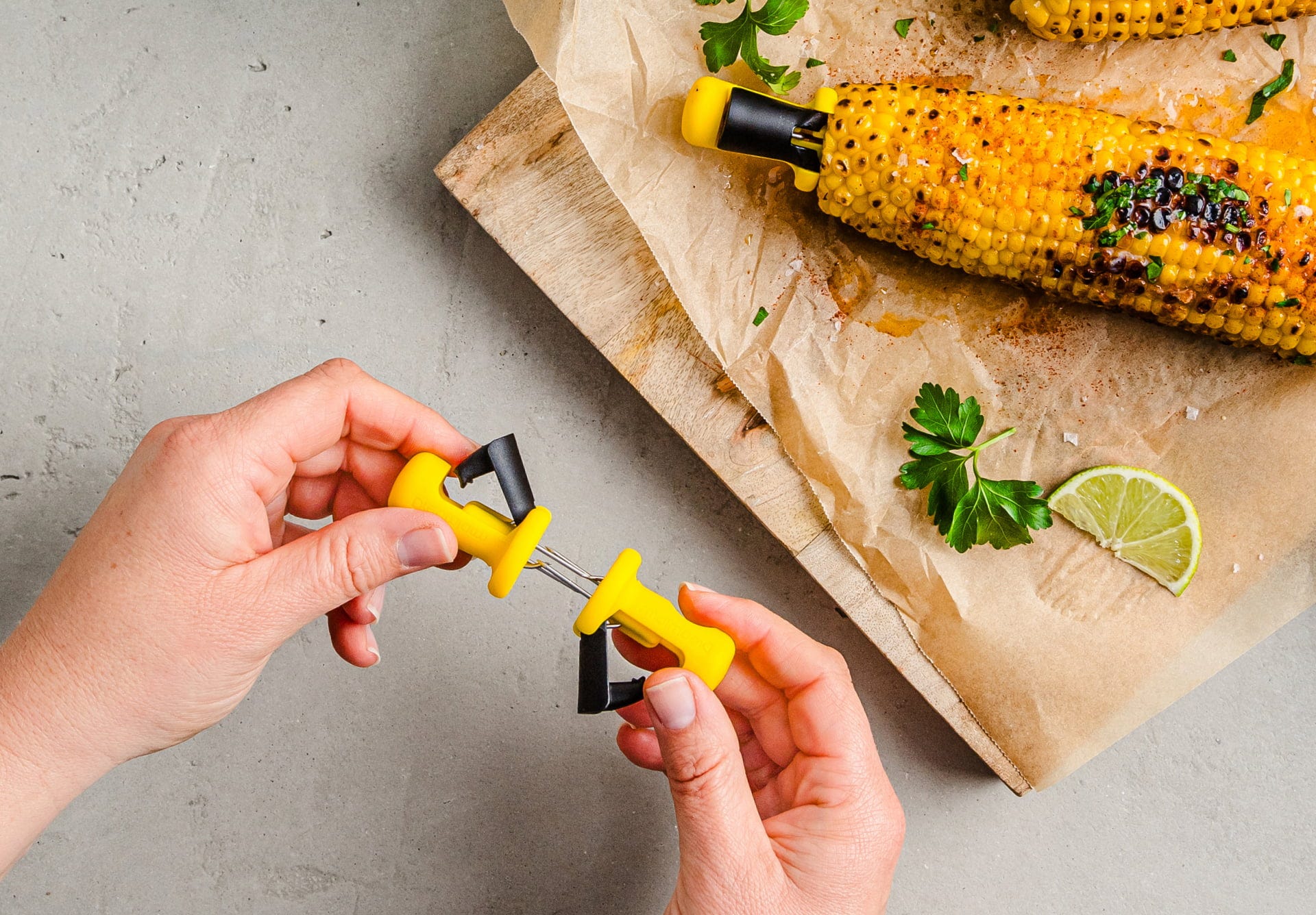 Ergonomska oblika poskrbi, da koruza varno leži v rokah, zaradi česar so ta držala idealen spremljevalec za večere ob žaru na vrtu, prijetne piknike ali hitro kuhanje na prostem. Po uporabi lahko pare preprosto zložite enega v drugega, tako da konice ostanejo varno skrite, komplet pa lahko pospravite v predal in pri tem prihranite prostor!