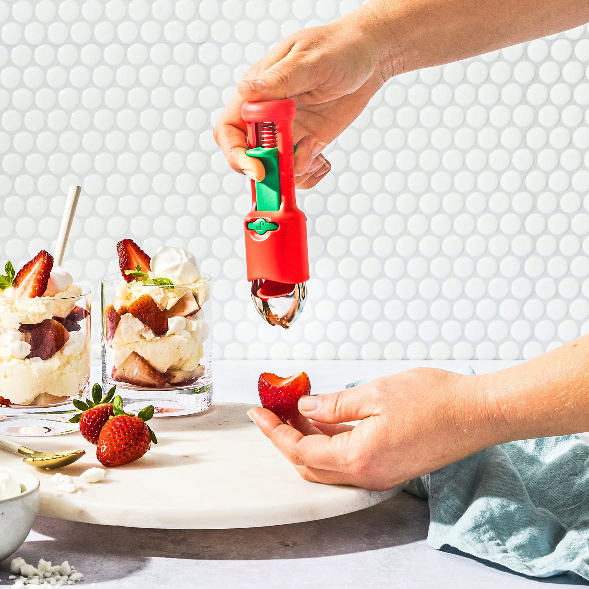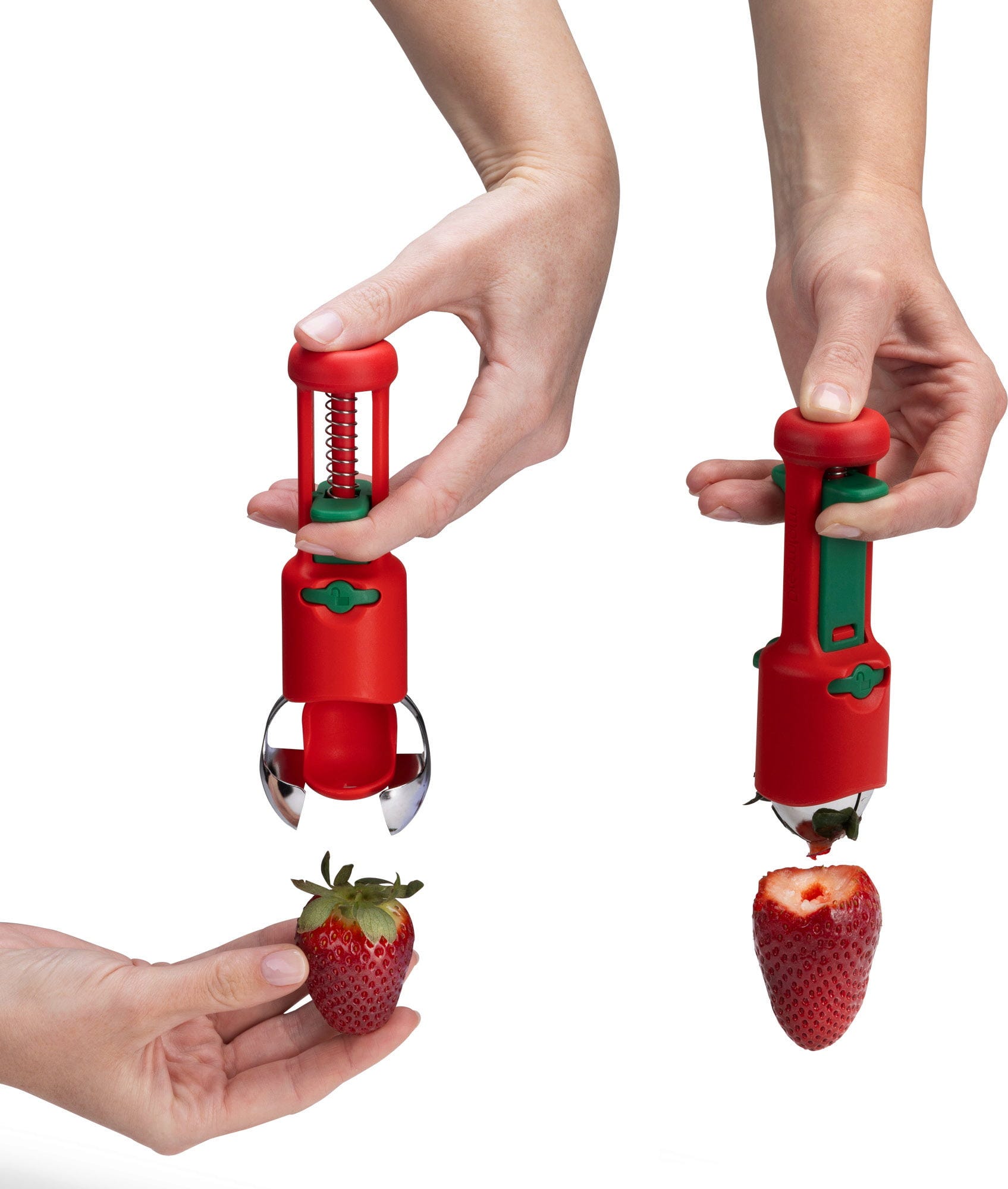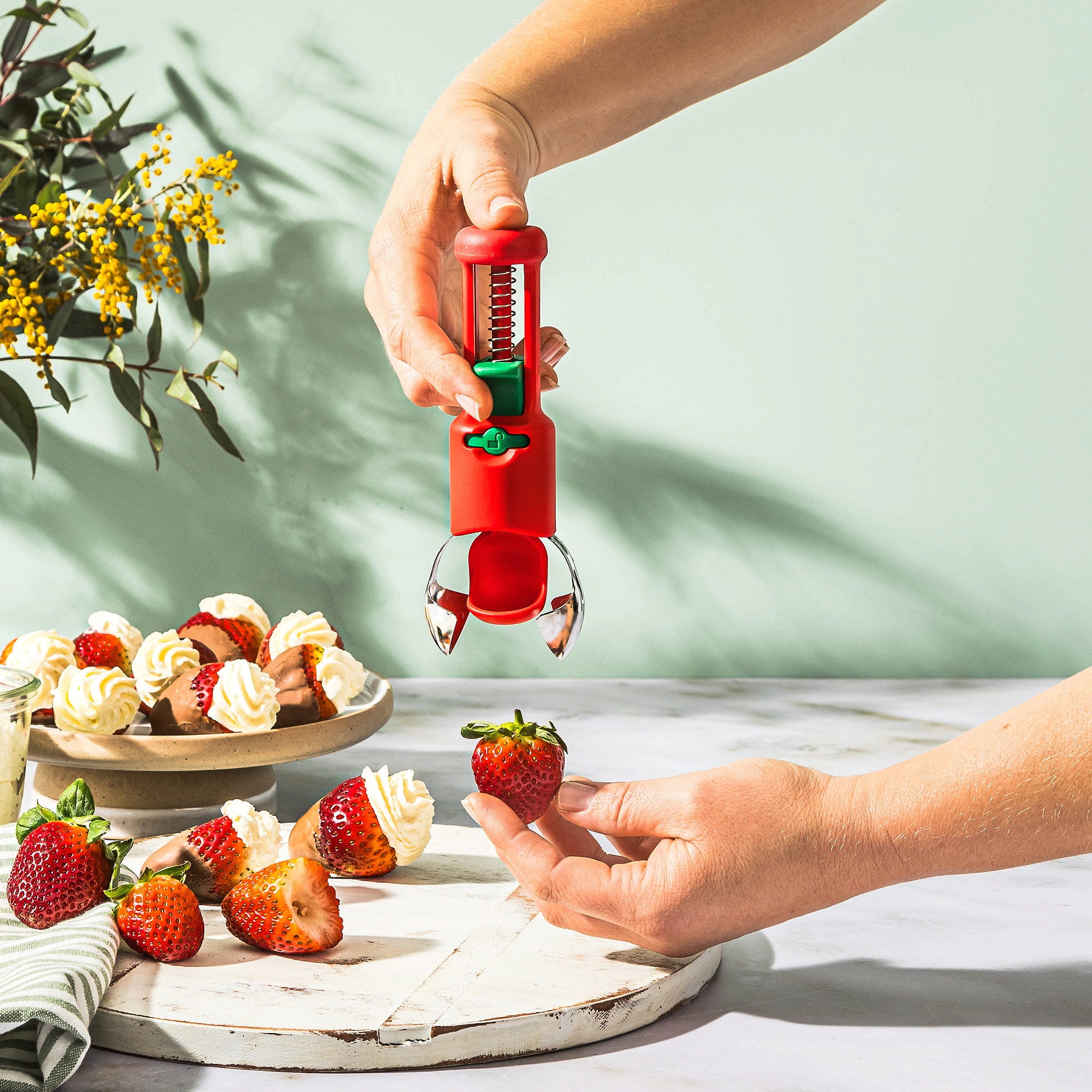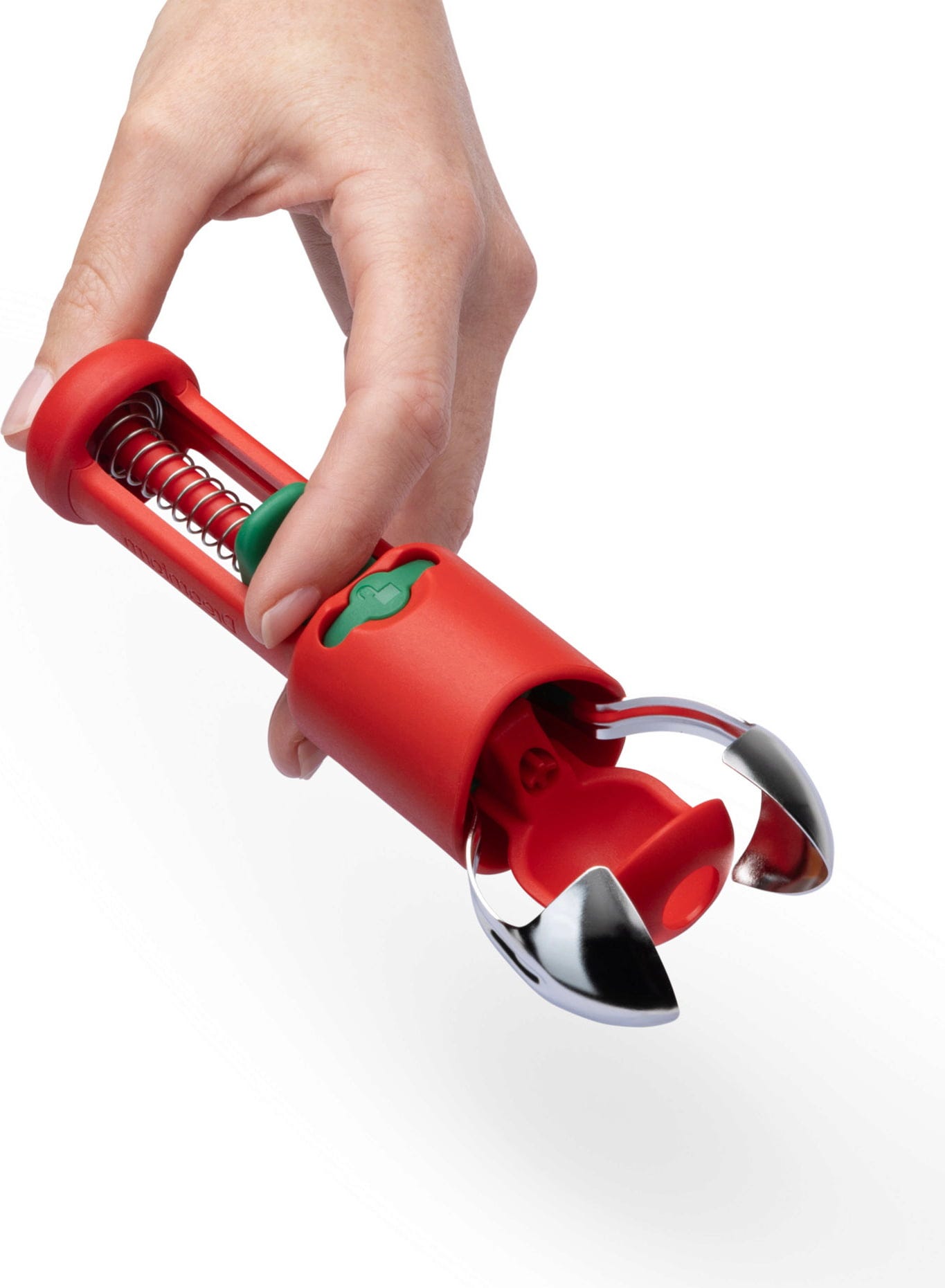 Z izdelkom Hullapit blagovne znamke Dreamfarm si zagotovite genialen izkoščičevalnik 3-v-1, ki poskrbi, da je nadležno odstranjevanje pecljev jagod otročje lahko, češnje ali olive pa razkoščiči v trenutku. Zahvaljujoč natančnim, koničastim rezilom iz nerjavečega jekla boste še posebej čisto odstranili celo neestetske rjave madeže na jagodičevju, medtem ko vzmetni potiskalnik koščice potisne neposredno v integrirano zbiralno komoro.