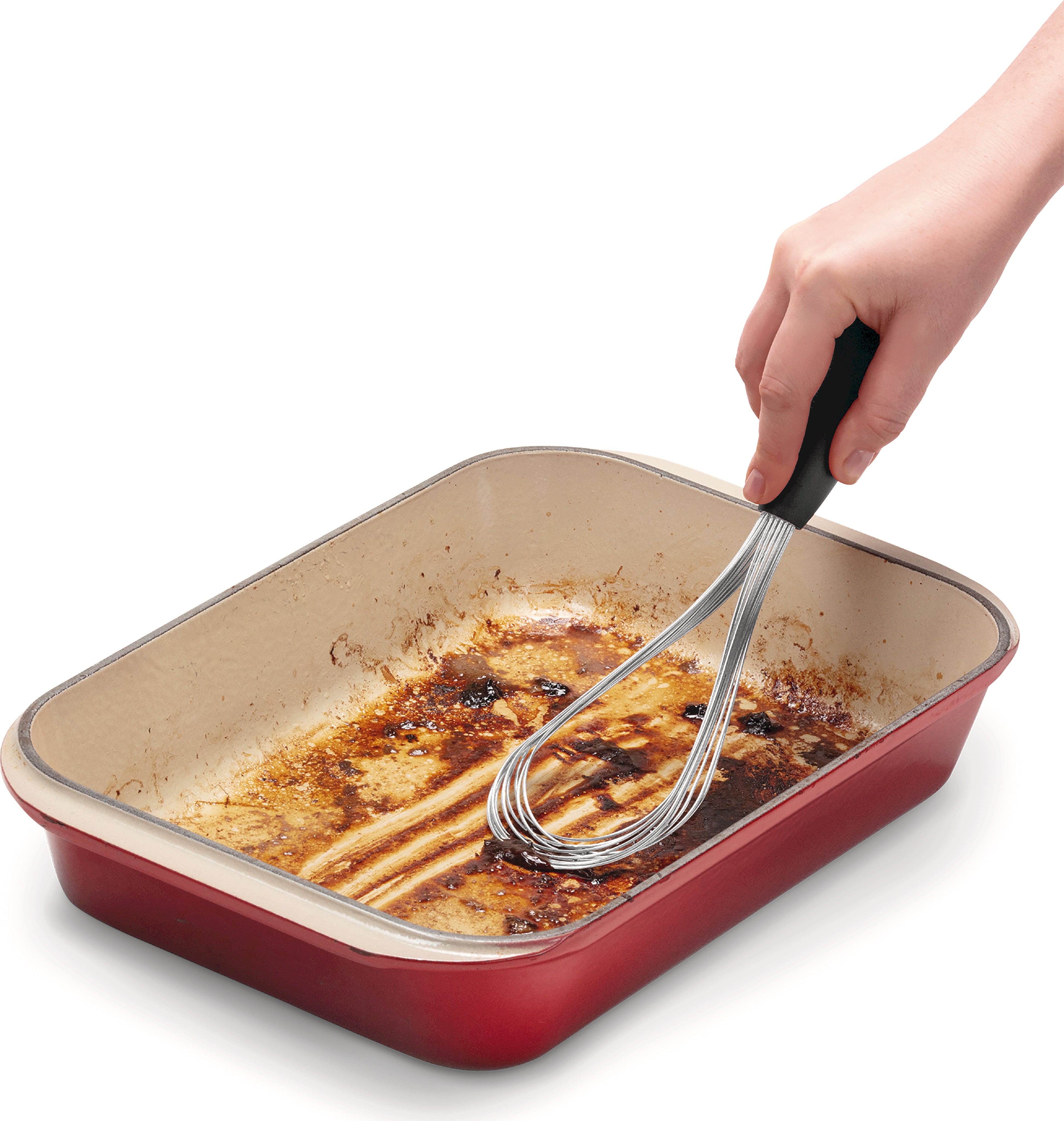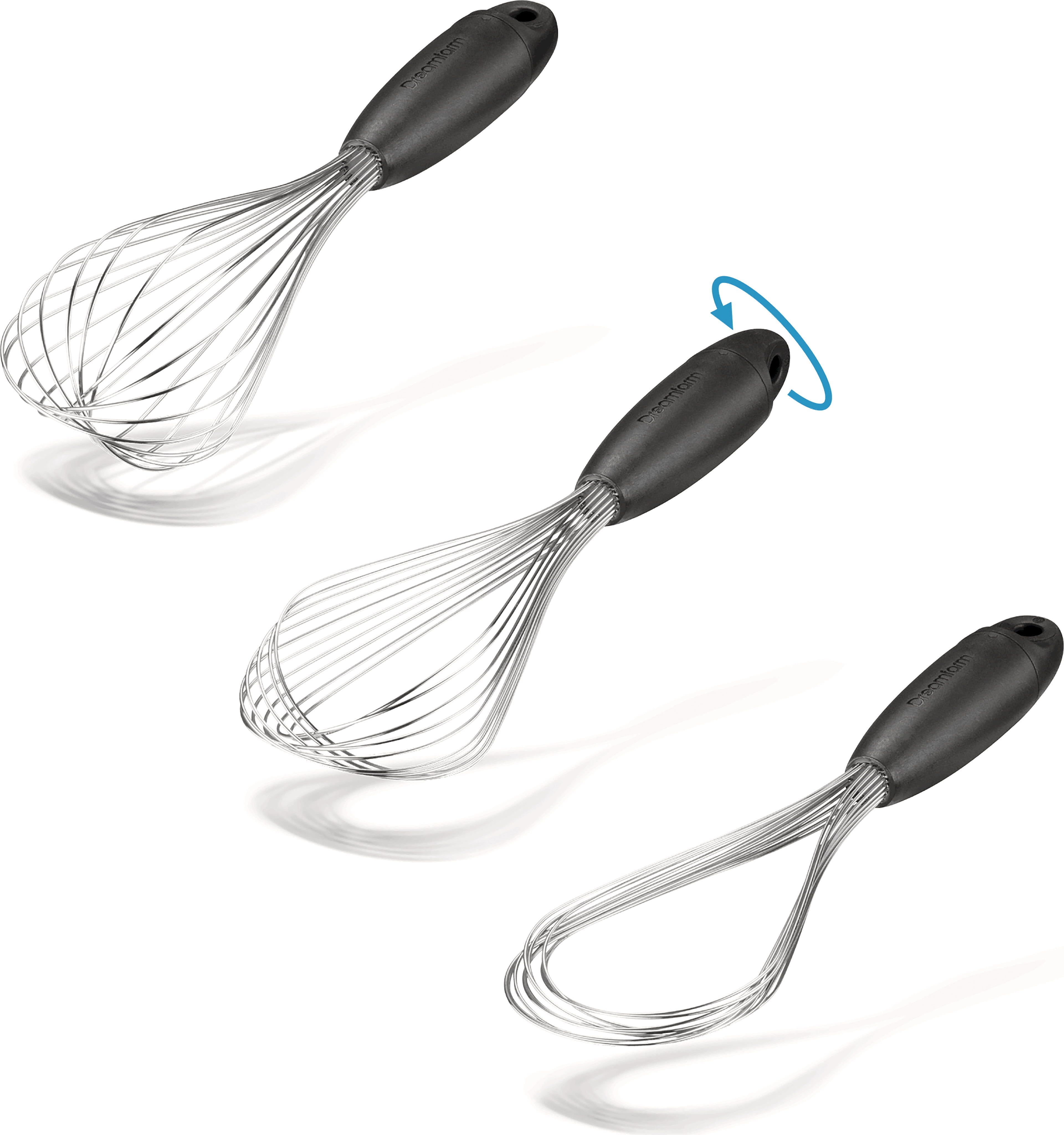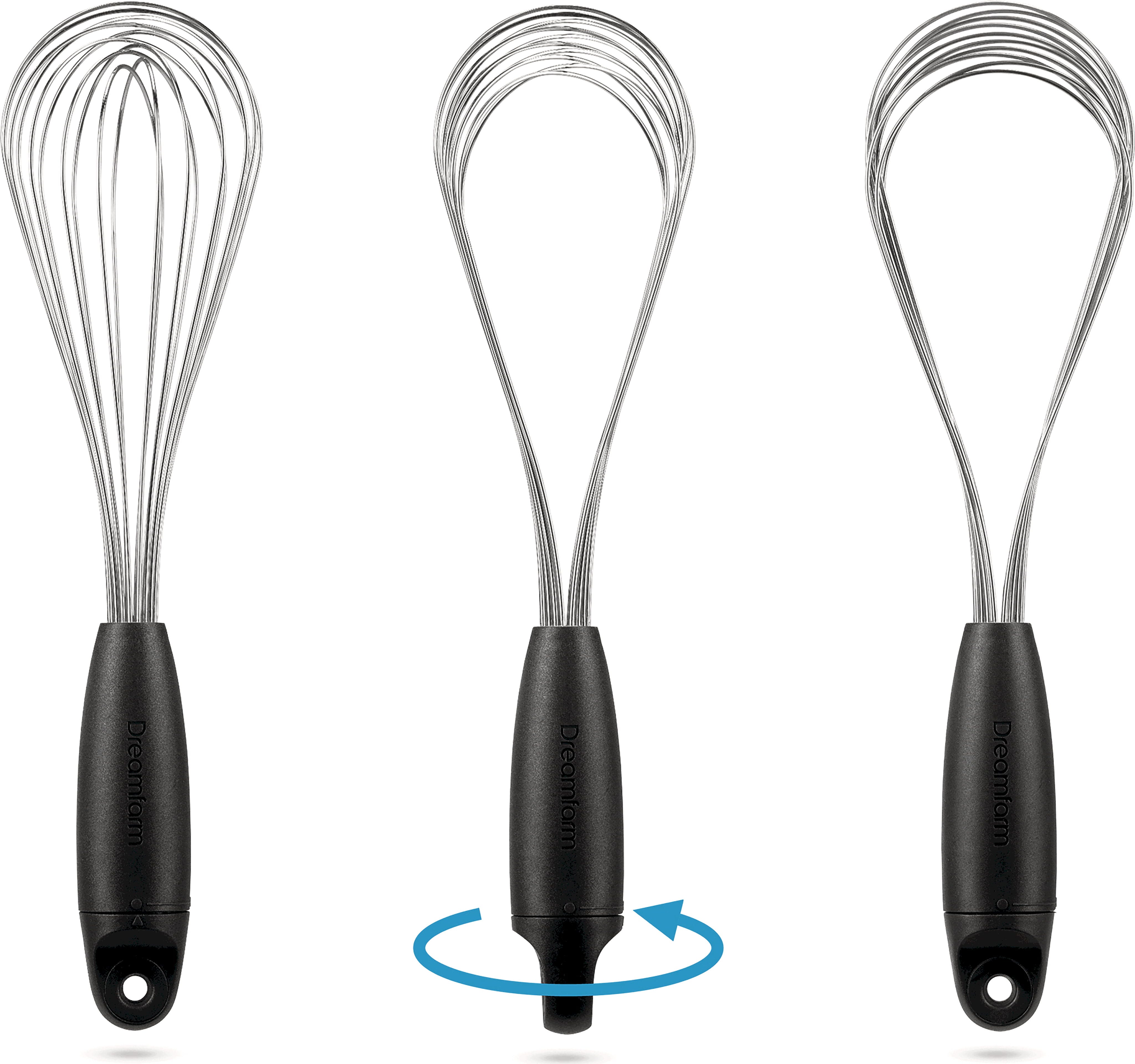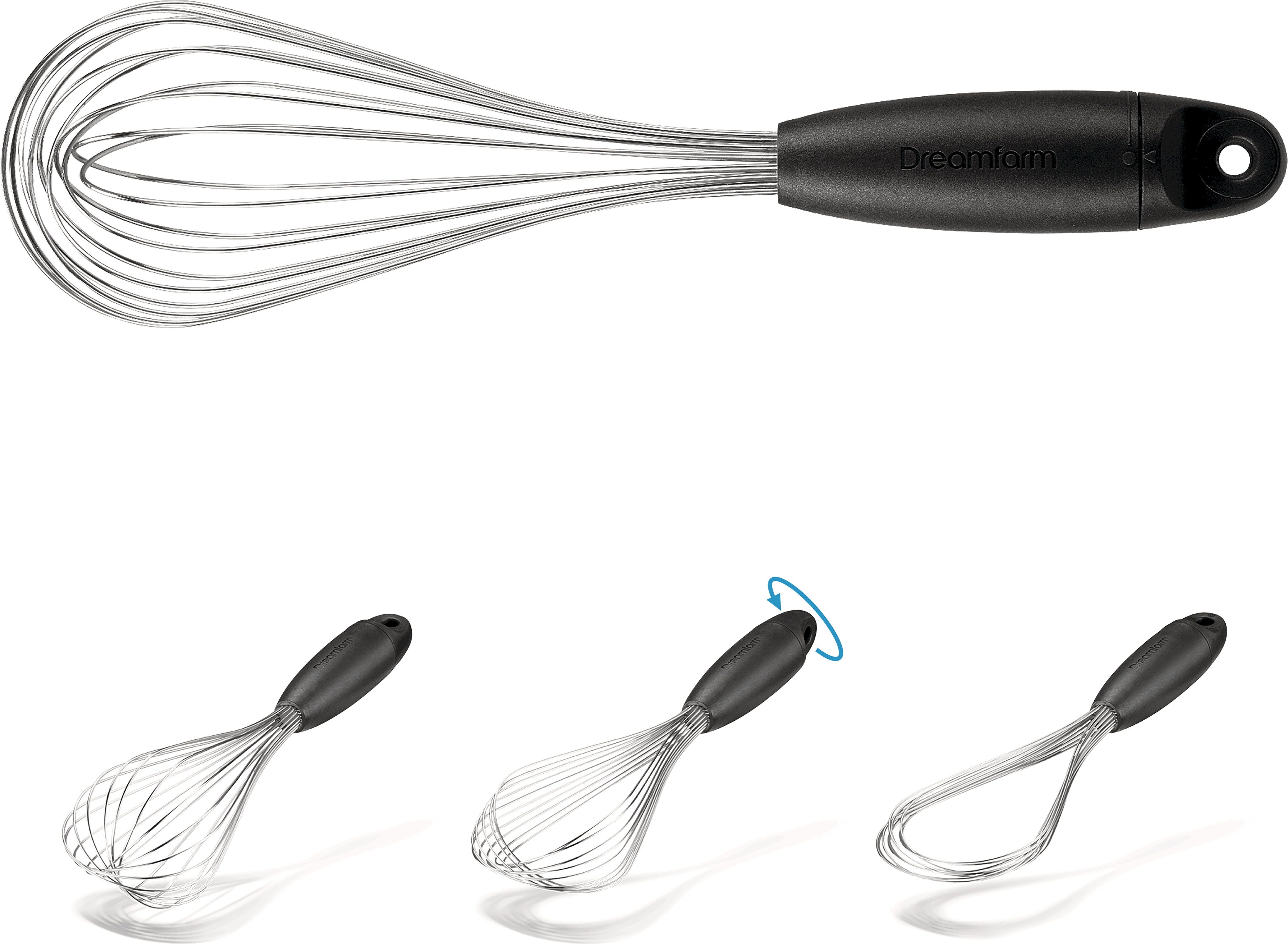 Metlica za stepanje Flisk znamke Dreamfarm je inovativna metlica, ki se s preprostim zasukom ročaja spremeni v tri različne oblike. Z nastavitvijo balona boste smetano stepli rahlo in puhasto, medtem ko je ploščata nastavitev za omake idealna za zgoščevanje in deglaziranje v nizkih ponvah. Po kuhanju jo lahko popolnoma zložite, kar omogoča izjemno varčevanje s prostorom v vašem predalu za pribor in preprečuje, da bi se zataknila ob druge pripomočke!