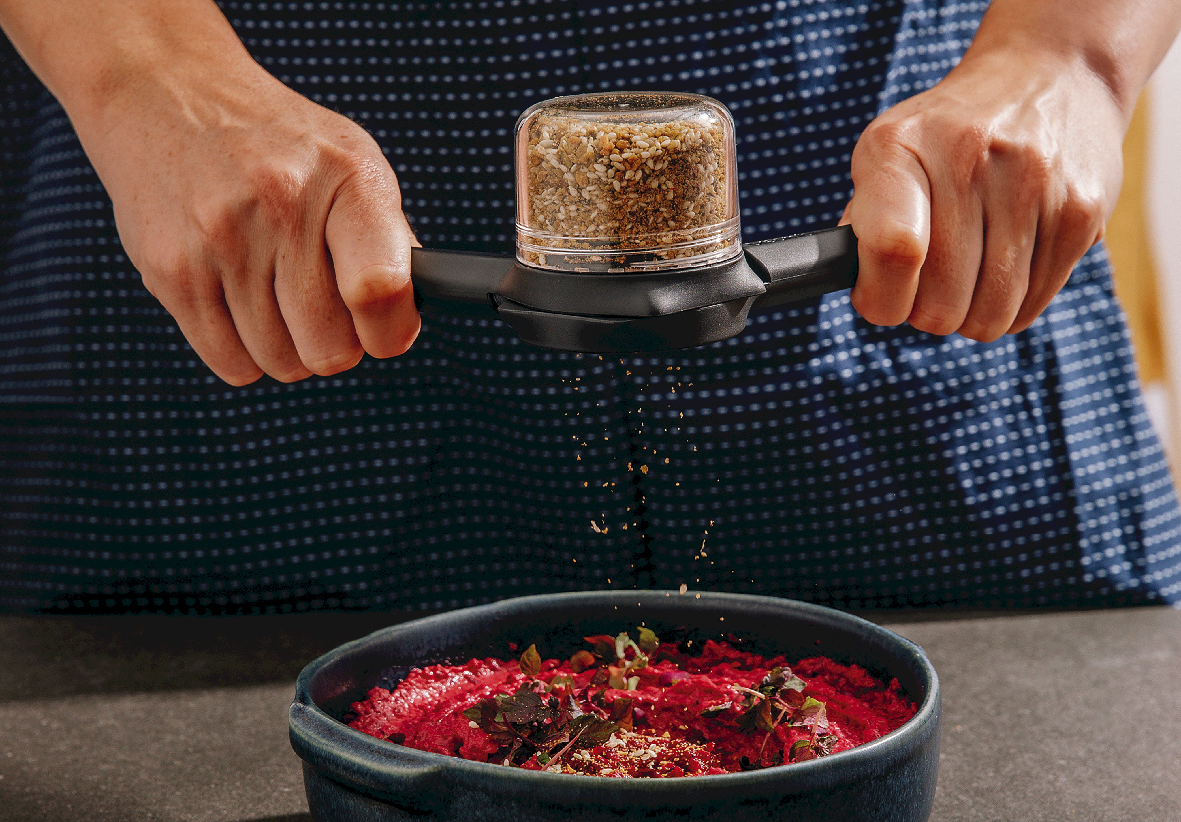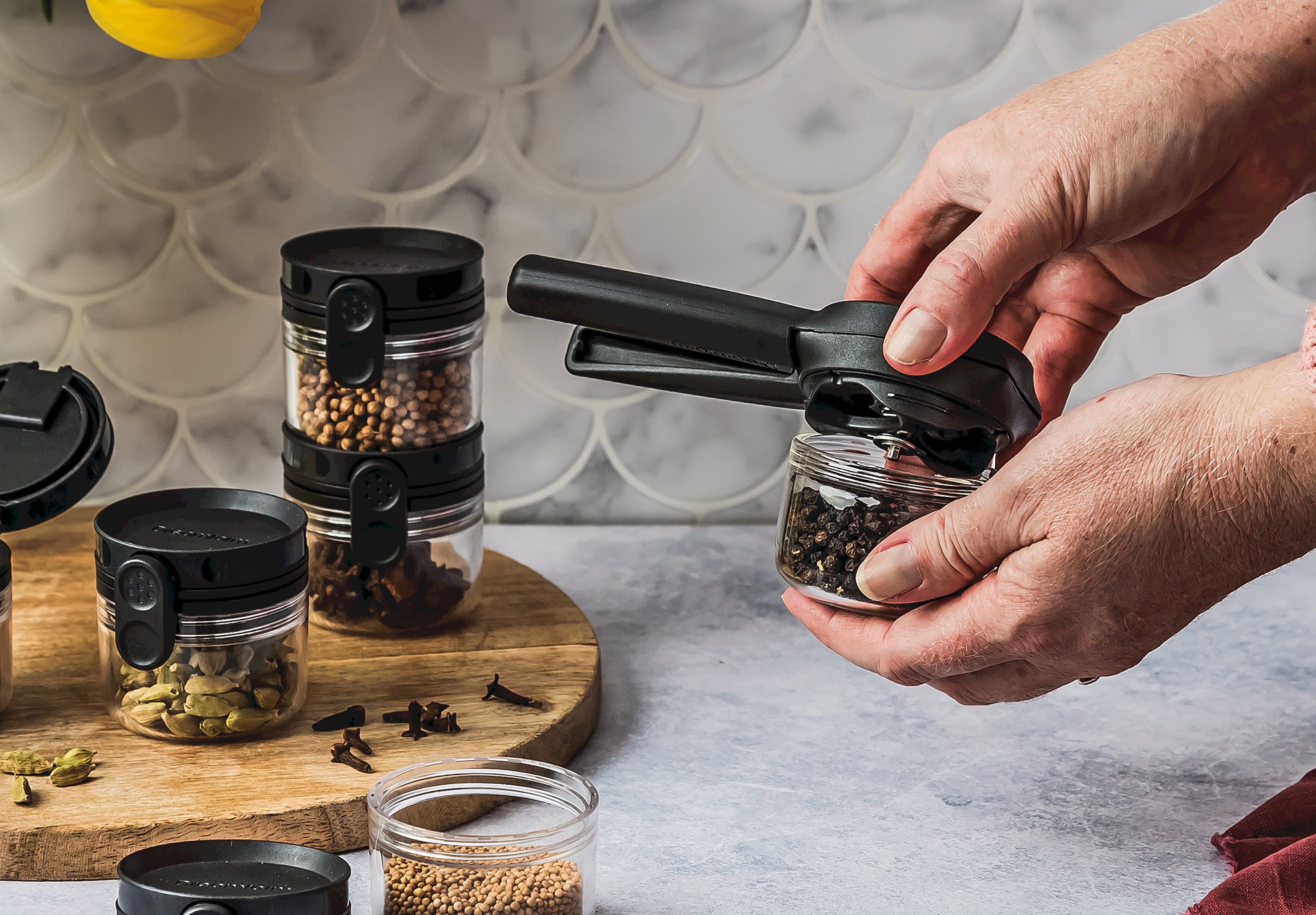 Mlinček za začimbe Ortwo Lite blagovne znamke Dreamfarm je prvi mlinček na svetu, ki združuje udobje enoročne uporabe z izjemno hitrostjo in visoko zmogljivostjo dvoročnega načina mletja. Izjemno oster keramični mlevni mehanizem je mogoče nastaviti na 6 stopenj, od superfinega do grobega, nikoli ne rjavi in je popolnoma primeren za vse začimbe – vključno s soljo.