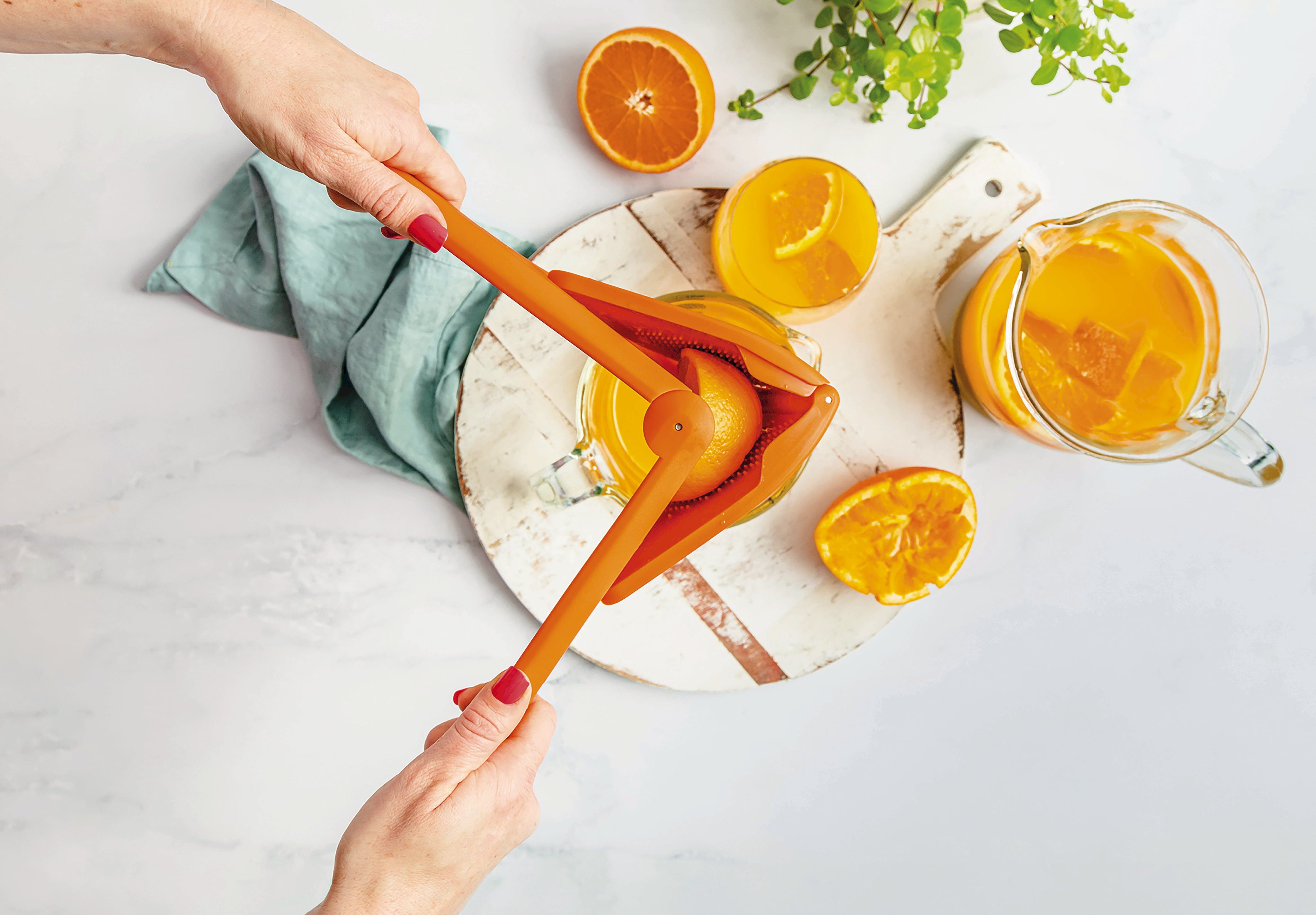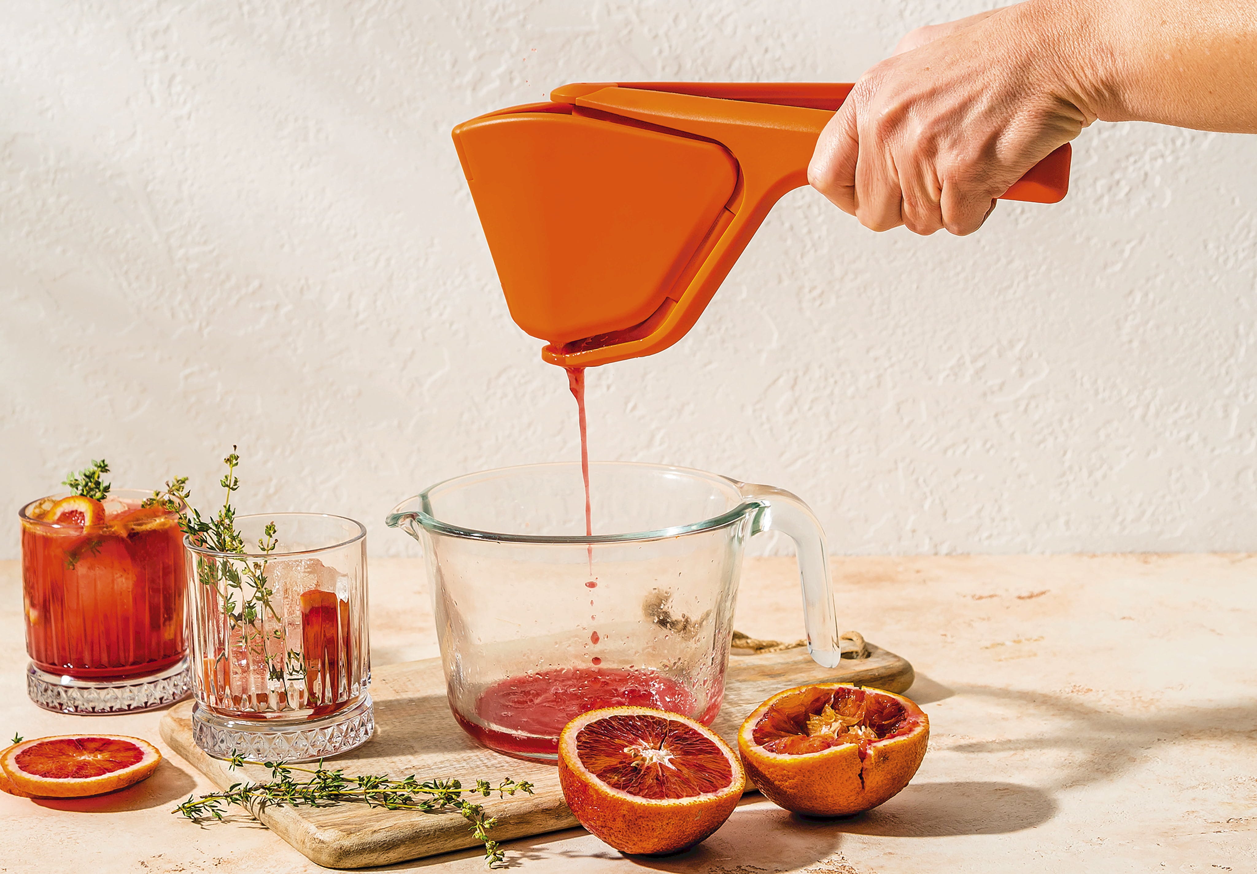Ožemalnik citrusov Fluicer znamke Dreamfarm je verjetno najučinkovitejši način za ožemanje citrusov! Inovativen zložljivi mehanizem sadje hkrati stisne od zunaj in znotraj, da iztisne največjo količino soka. Zahvaljujoč dolgemu ročaju izkoristite močan učinek vzvoda za ožemanje brez truda. Integrirana zaščita pred pršenjem zagotavlja čisto delo, medtem ko se naprava po uporabi popolnoma plosko zloži in omogoča shranjevanje, ki zavzame malo prostora.