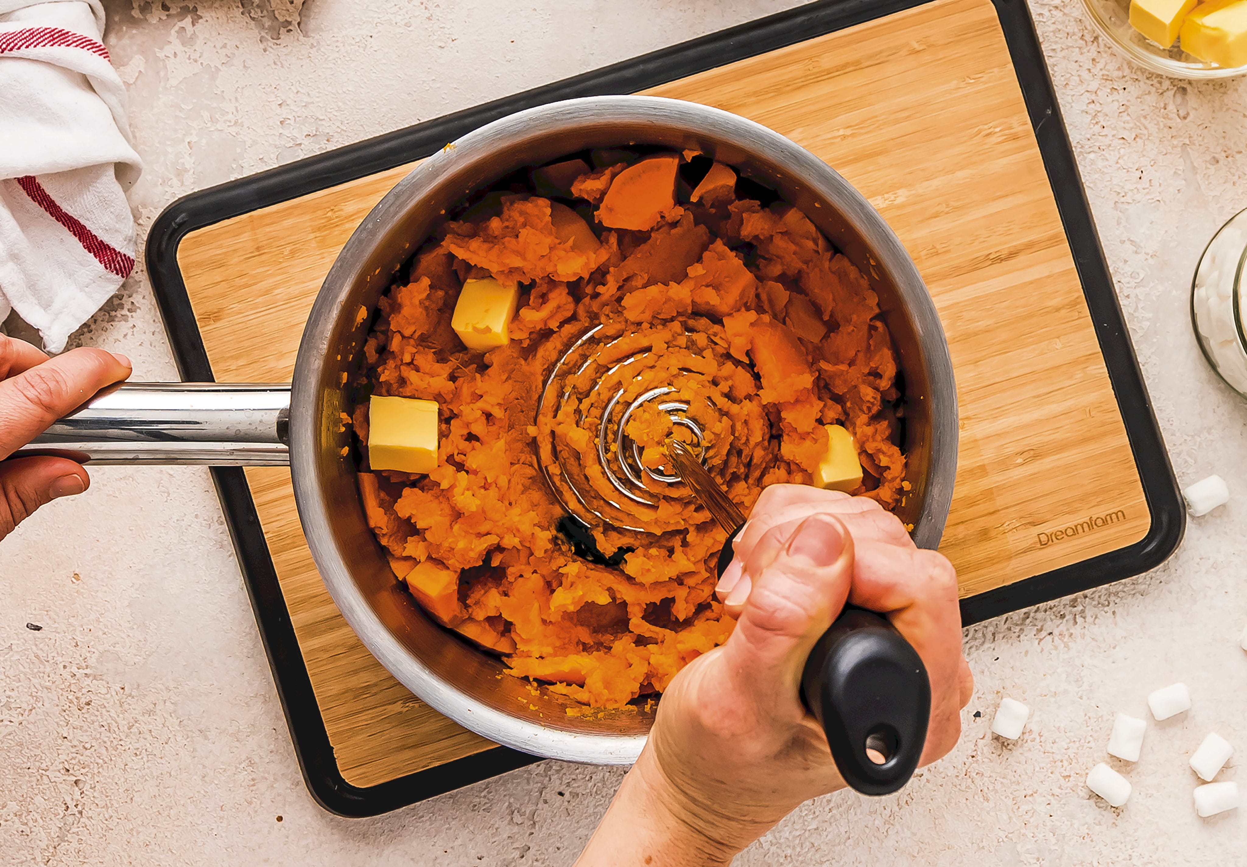 Pozabite na naporno tlačenje, saj boste s tlačilnikom krompirja Smood znamke Dreamfarm v nekaj sekundah pričarali najmehkejši in najbolj puhast pire, kar ste ga kdaj poskusili! Skrivnost je v pametni vzmetni glavi za pasiranje: s preprostim stiskanjem zavojev se kuhana hrana učinkovito seseklja, ne da bi za to potrebovali veliko moči – zahvaljujoč ergonomskemu ročaju Multi-Grip pa imate pri tem popoln nadzor.
