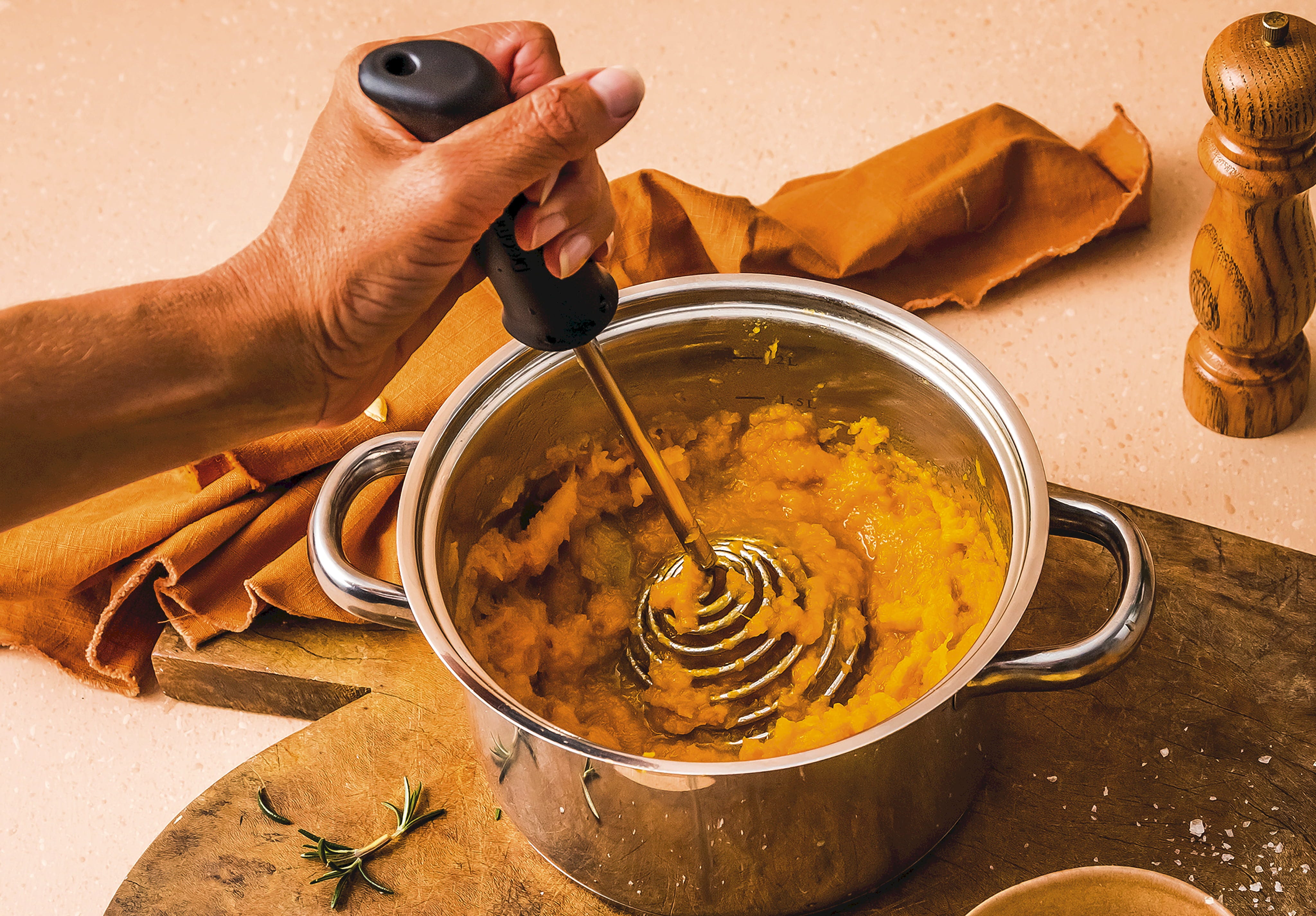 Ta vsestranski pripomoček pa ni odličen le za krompir, temveč v trenutku pripravi tudi kremast gvakamole, fino otroško hrano ali svilnat pire iz buč in sladkega krompirja. Izdelan je iz visokokakovostnega nerjavečega jekla in toplotno odpornega silikona (do 260 °C), je izjemno trpežen in hkrati ščiti posodo.