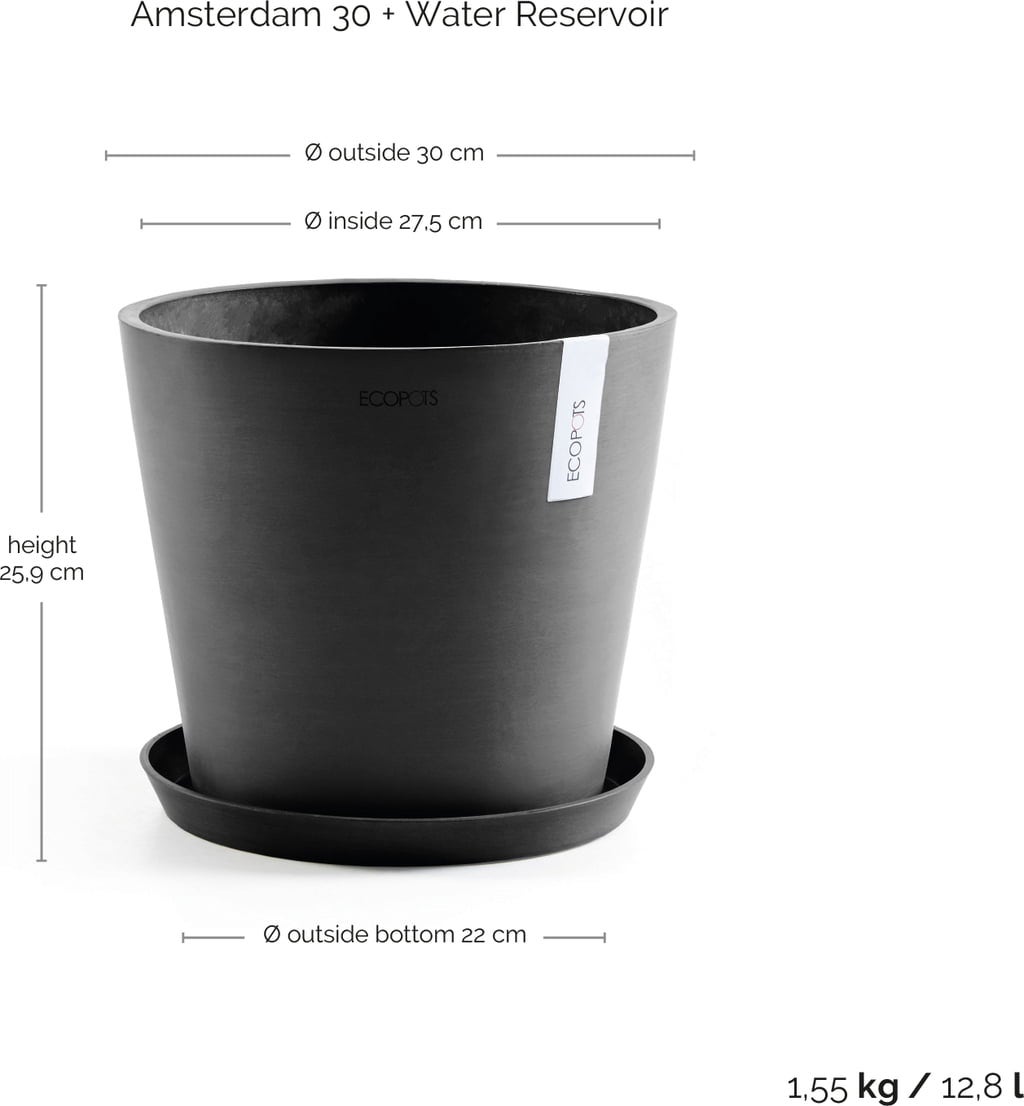 Ecopots Amsterdam cvetlični lonec z rezervoarjem za vodo - temno siv, Ø 30 cm