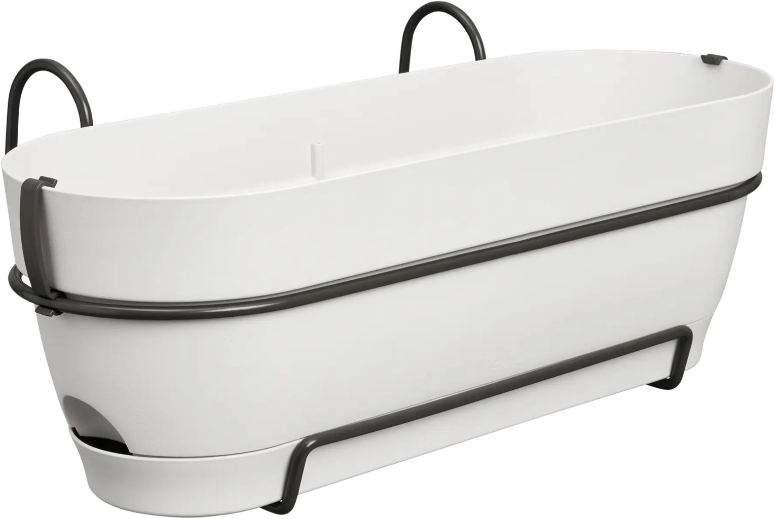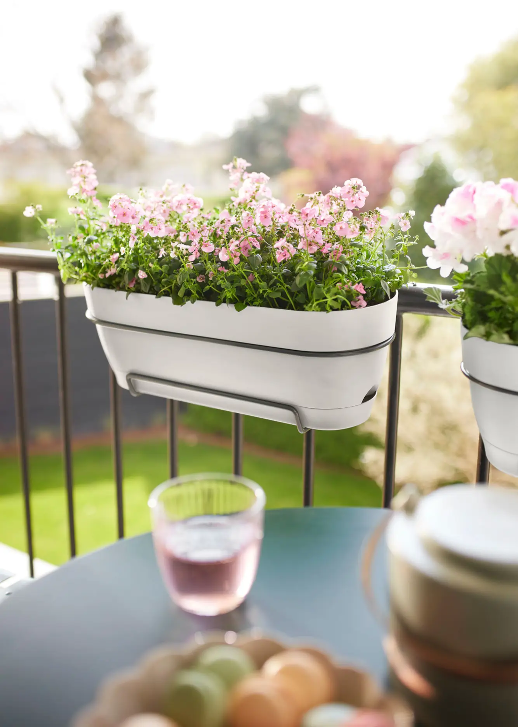 S trajnostno izdelanim balkonskim koritom v trendovskih barvah lahko ozelenite balkonske ograje, ograje in okenske police na sodoben način in svoj dom spremenite v zeleno oazo. Ne glede na to ali posamično ali v kombinaciji z drugimi lonci iz serije vibia, je to balkonsko korito vedno odlična paša za oči, saj vašim rastlinam zaradi vgrajenega zbiralnika vode vedno zagotovi dovolj vode.