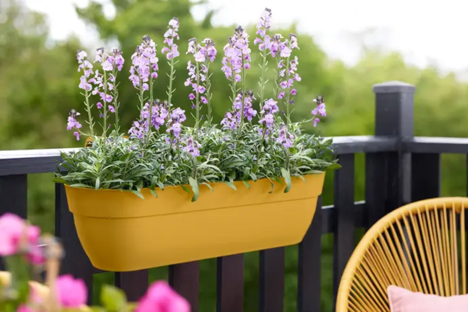 Balkonsko korito vibia campana easy hanger XXL spremeni vaš balkon v zeleni raj. Enostavno je za montažo, stabilno in primerno za ograje širine do 6,5 cm. Integrirane drenažne cevi zagotavljajo, da bodo vaše rastline ostale zdrave, medtem ko je balkonsko korito odporno na vremenske vplive, barvno obstojno in enostavno za čiščenje. Narejeno je iz 100 % reciklirane plastike in trajnostno proizvedeno z uporabo vetrne energije.