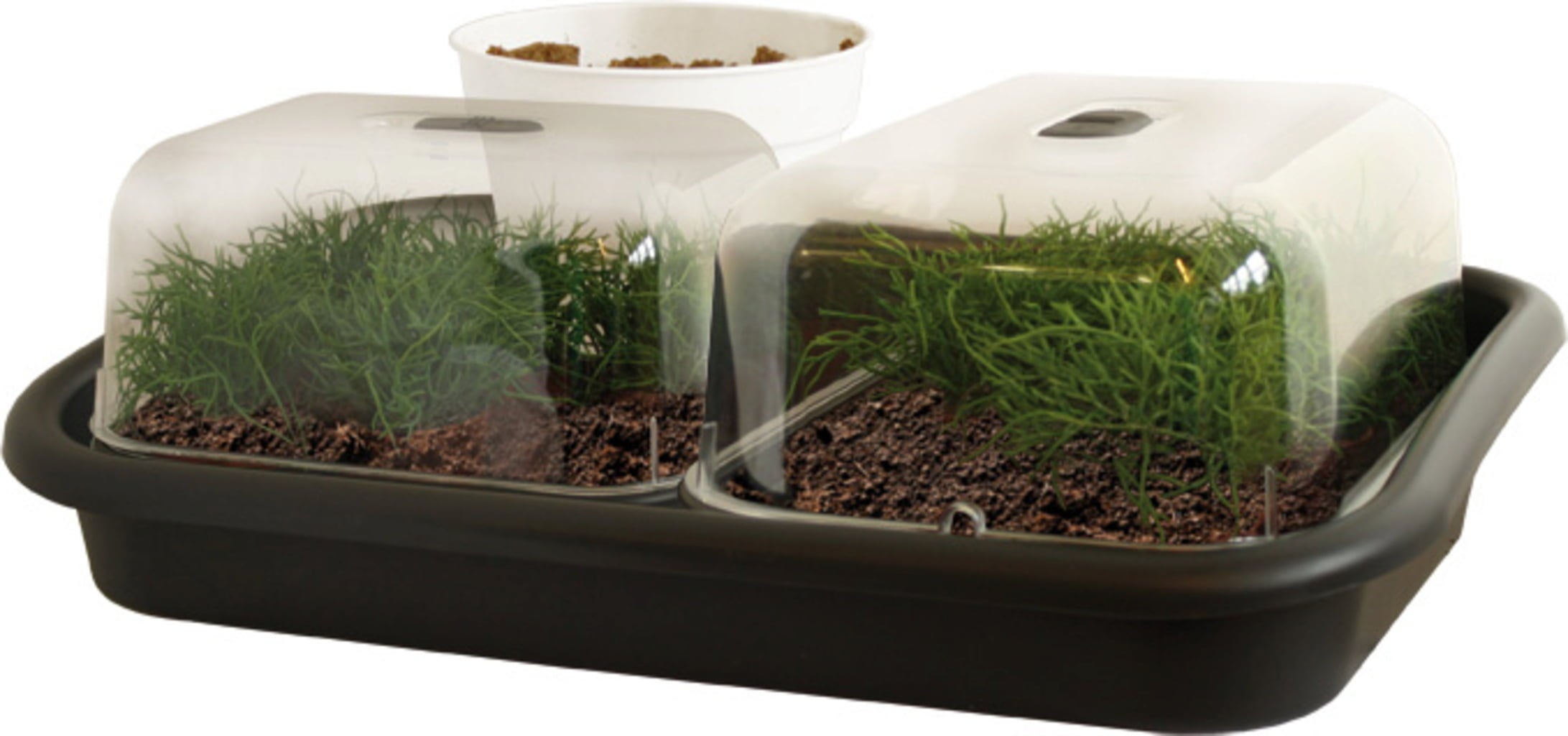 Večnamensko orodje ni samo koristen pomočnik na vrtu, temveč tudi nepogrešljiv v manjših rastlinjakih. Uporabite ga lahko kot praktično delovno mizo in na njej postavite majhno vrtno orodje, semena in zemljo. Visok rob pladnja zanesljivo preprečuje, da bi nekaj padlo.