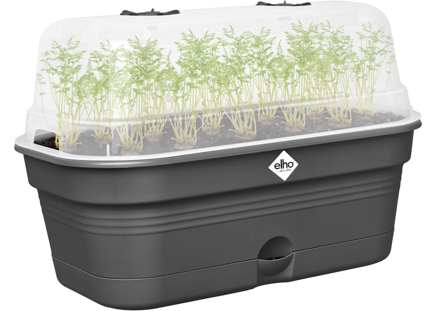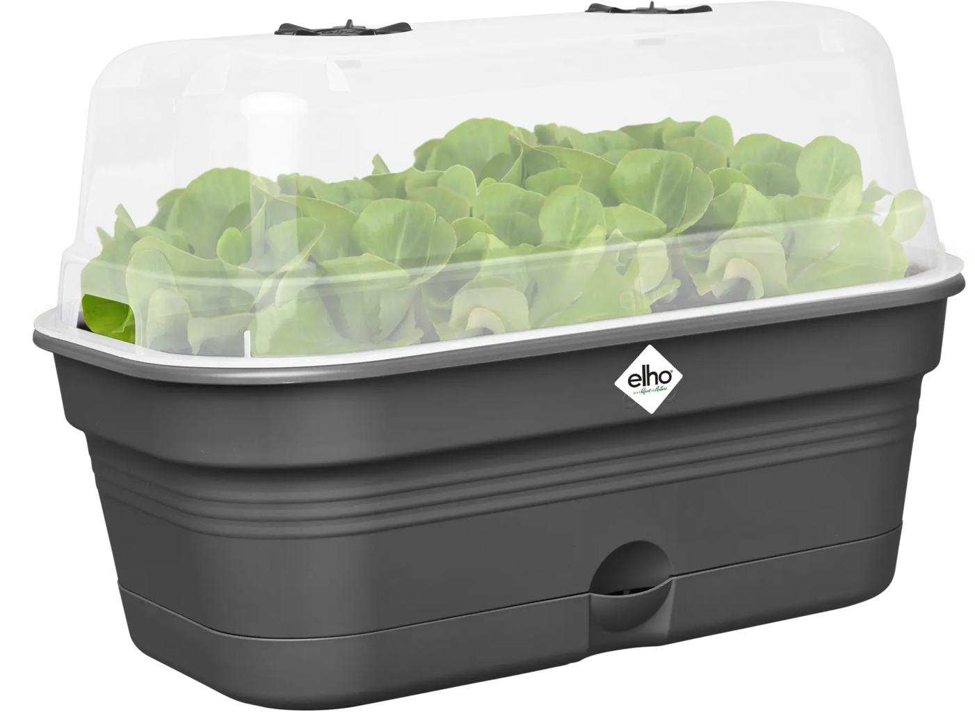 S tem praktičnim kompletom za gojenje iz reciklirane plastike je gojenje sadnih, zelenjavnih in zeliščnih rastlin zelo enostavno, saj nudi nežnim rastlinam najboljše možne pogoje za rast. Zahvaljujoč integriranemu rezervoarju za vodo imajo vaše rastline vedno na voljo dovolj vode in vam ni treba nenehno skrbeti za zalivanje. Priložena škatla za razmnoževanje ščiti vaše rastline pred neposredno sončno svetlobo ter žuželkami in pticami ter zagotavlja optimalno rastno klimo. Tako se lahko kmalu veselite bujnih samoraslih rastlin.