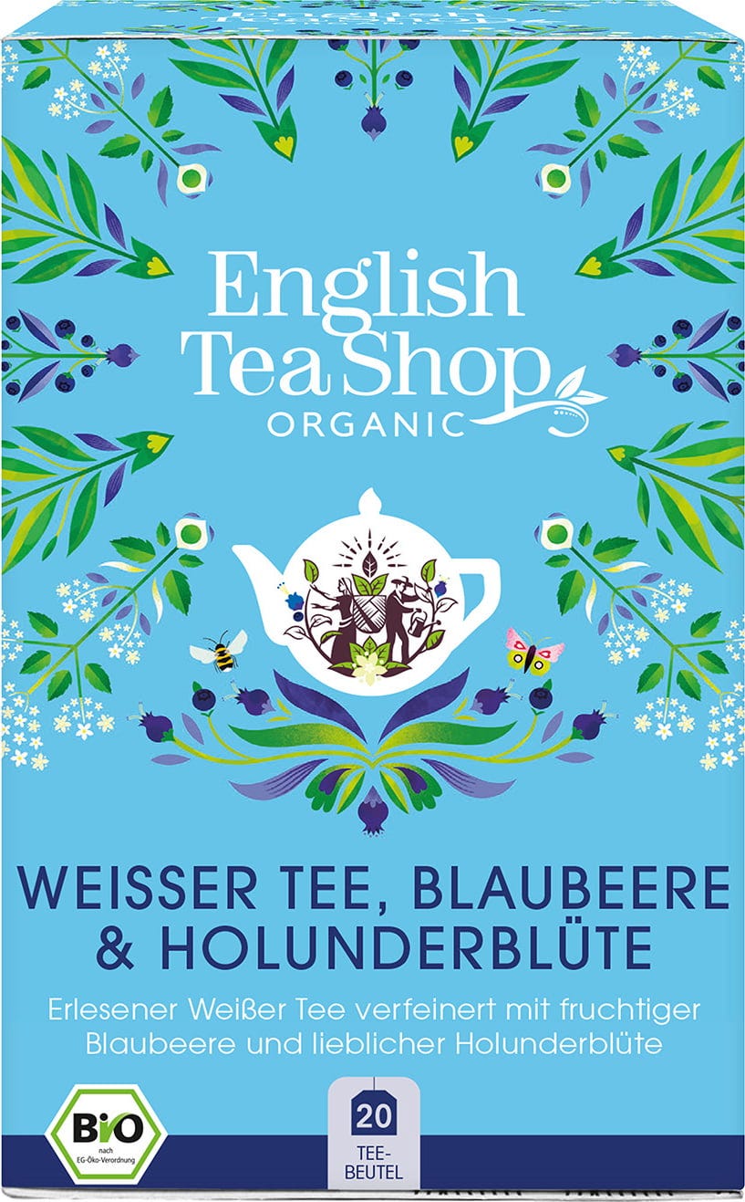 English Tea Shop Bio beli čaj z borovnicami in bezgom, 20 čaj. vreč.
