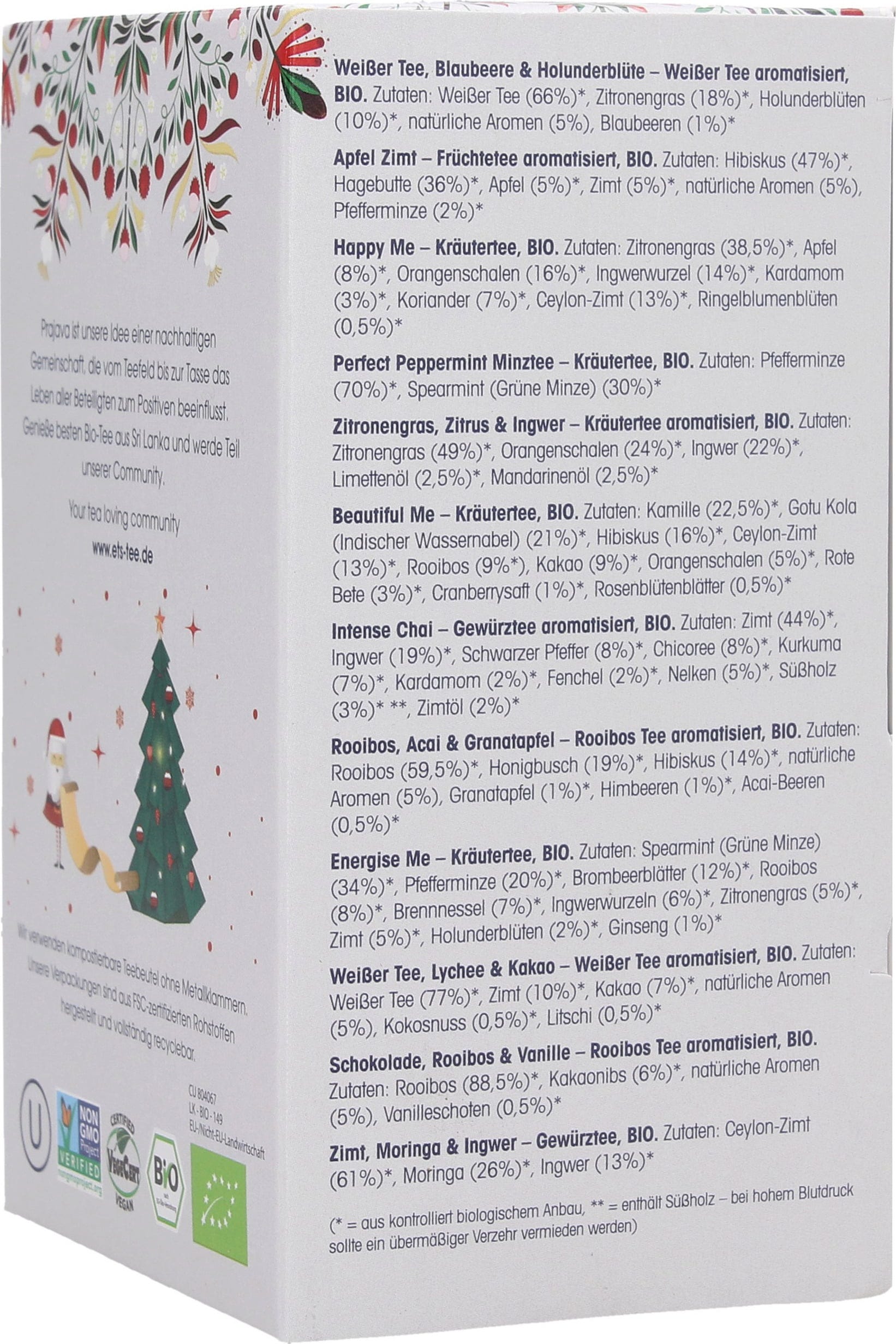 24 modnih čajnih kreacij iz nadzorovane ekološke pridelave. Odličen način, da se z izvrstnimi trenutki užitka spravite v božično razpoloženje. Fine sestavine superživil, kot so kurkuma, guduchi in gotu kola, poskrbijo za sodobno čajno poslastico.