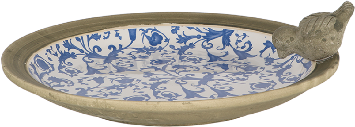 Ta ptičja kopel v elegantnem starinskem dizajnu navdušuje z razpokano keramiko in čudovitim modrim baročnim motivom - majhna keramična ptica je prikupen dodatek. Tako lahko pticam, ki obiščejo vaš vrt ali balkon, zagotovite prijeten prostor za kopanje in pitje.