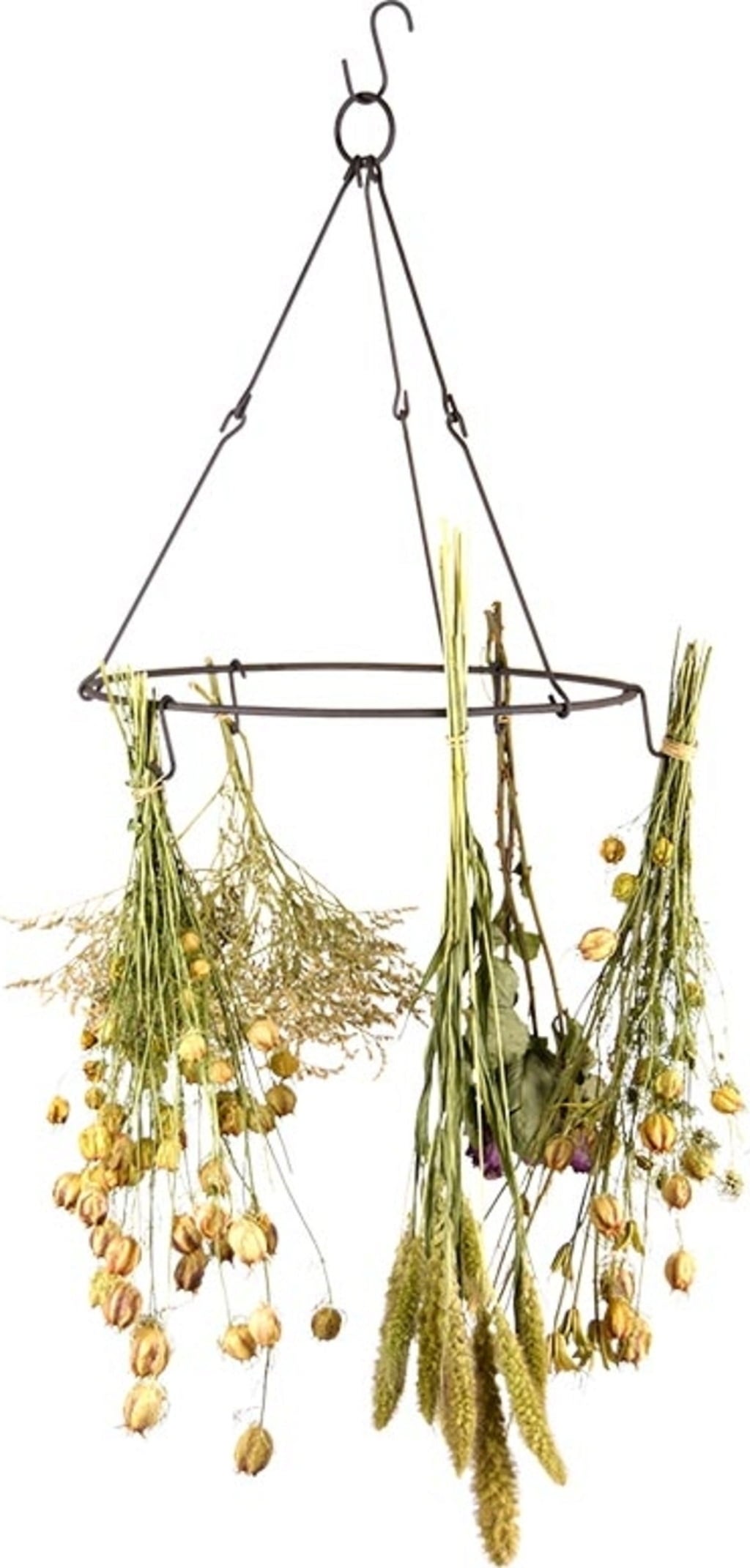 S tem okvirjem je zadeva zelo enostavna in tudi izgleda neverjetno. Z vrvjo privežite več vejic svežega zelišča in jih obrnite na glavo na enega od petih trnkov tega sušilnika zelišč.