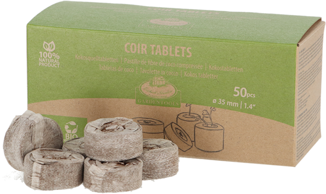 Tablete iz kokosa so idealne za gojenje sadik v lončkih ali rastlinjakih. Preprosto jih prelijte z vodo in tablete bodo nabrekle, vpile vodo ter mladim rastlinam zagotovile vlažen, s hranili bogat substrat. Ne vsebujejo šote in so enostavne za uporabo.