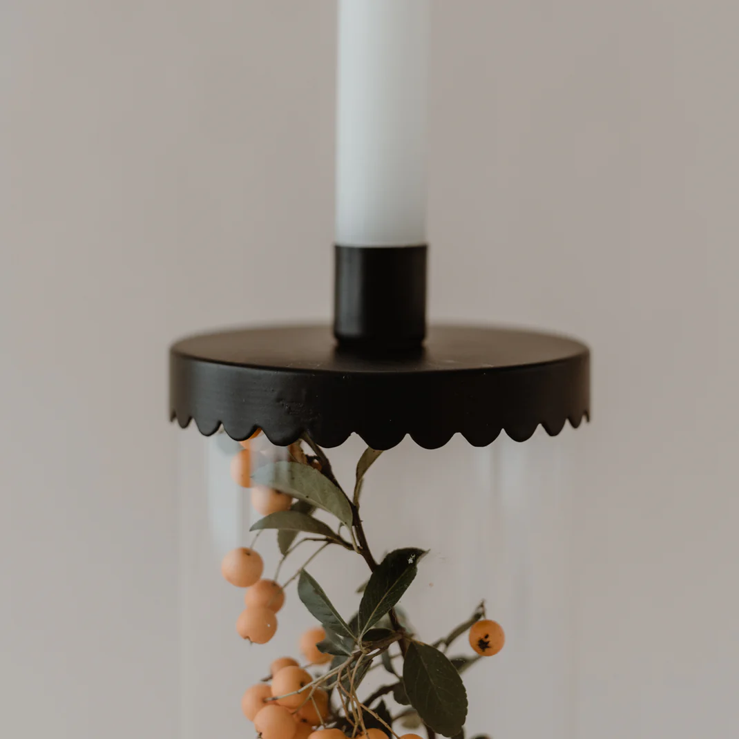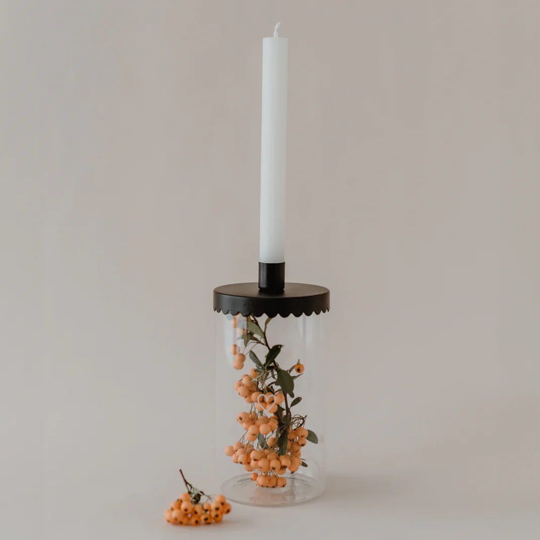 Črni svečnik z valovitim robom za namestitev na kozarec bo vašo namizno dekoracijo spremenil v pravo pašo za oči! Valovit rob doda poseben pridih vsakemu kozarcu za shranjevanje. Primeren je za vse kozarce za shranjevanje z višino 13–31 cm, zato jih lahko vedno znova okrasite in kombinirate.