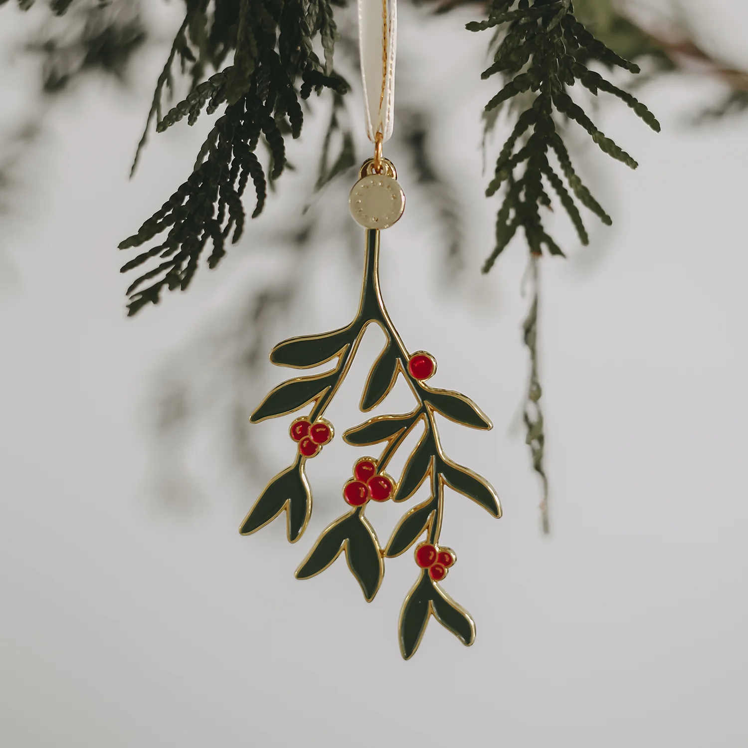 Okrasek v obliki omela prinaša čarobnost prazničnega časa neposredno na božično jelko. Okrasek, oblikovan v klasičnih zelenih in rdečih tonih z zlatimi poudarki, ustvarja toplo, praznično vzdušje – morda celo vabi k poljubu ali dvema pod drevescem.
