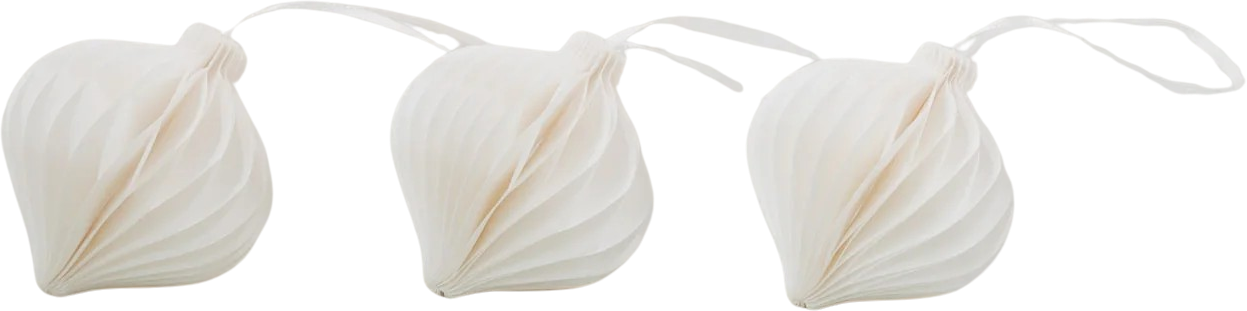 Ti papirnati obeski, ki so na voljo v kompletu treh kosov, v vašo božično dekoracijo vnašajo topel, naraven izgled in prefinjeno eleganco. Z videzom satovja in elegantno obliko se harmonično prilegajo božičnim jelkam, vejam ali oknom in dodajo elegantne poudarke vsakemu prazničnemu ambientu.