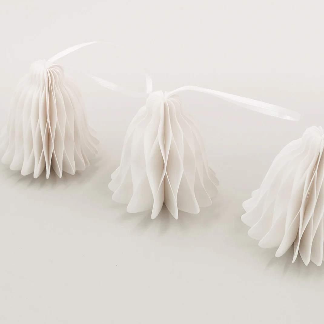 Papirnati okraski v obliki zvončka bodo vašim božičnim dekoracijam dodale naravno eleganco. Na jelki, vejah, oknih ali darilih ustvarjajo subtilne in elegantne poudarke.