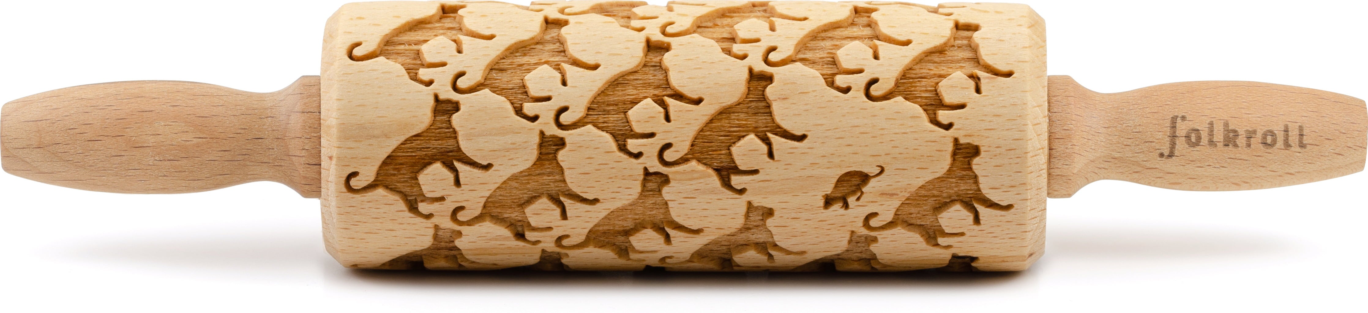 S tem čudovito graviranim valjarjem z ljubkimi mačkami lahko hitro in enostavno naredite okrasne piškote. Uporaba je zelo enostavna: enostavno povaljate po razvaljanjem testu za piškote, nato pa s slaščičarskim koleščkom, nožem ali vašim najljubšim modelčkom za piškote izrežite piškote. Pecite kot običajno in uživajte!