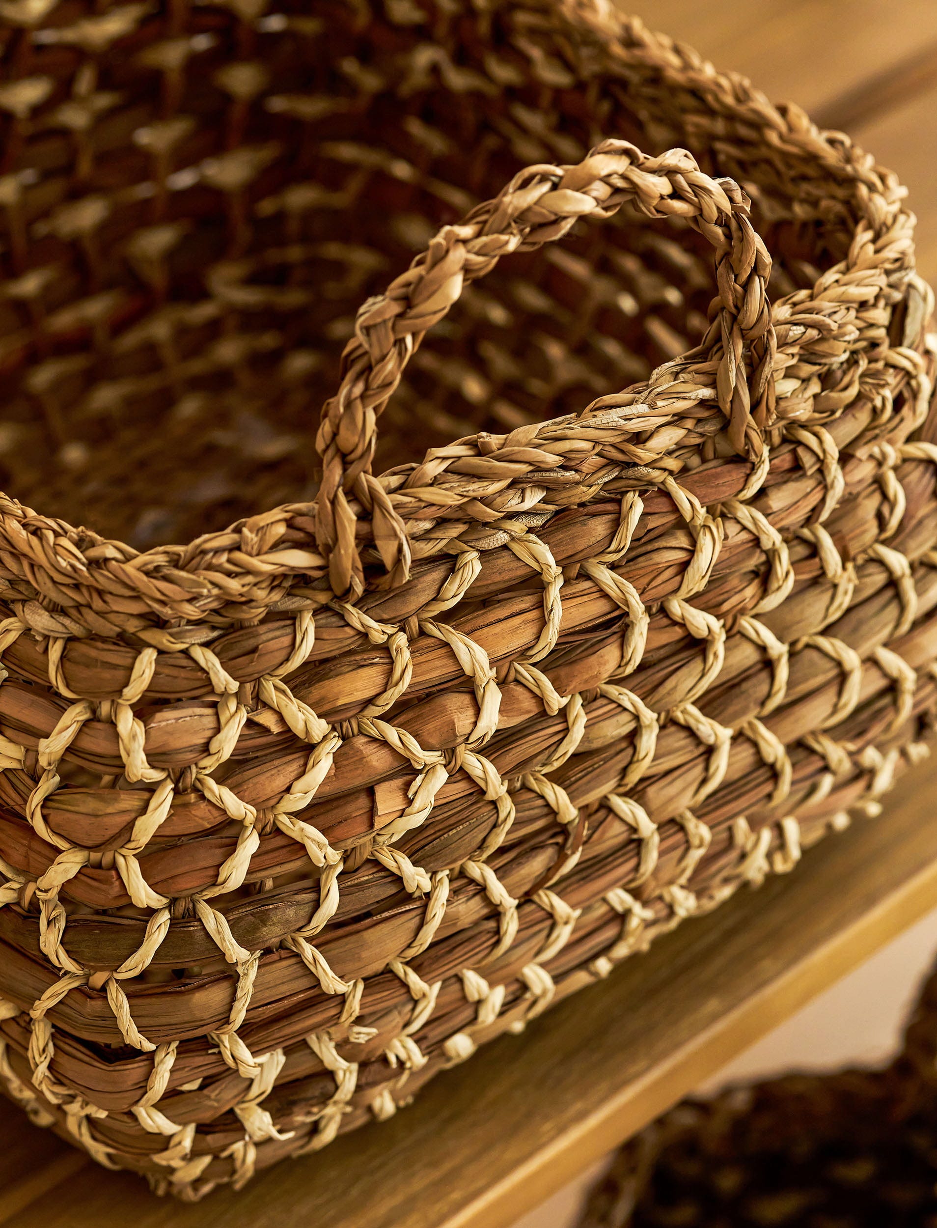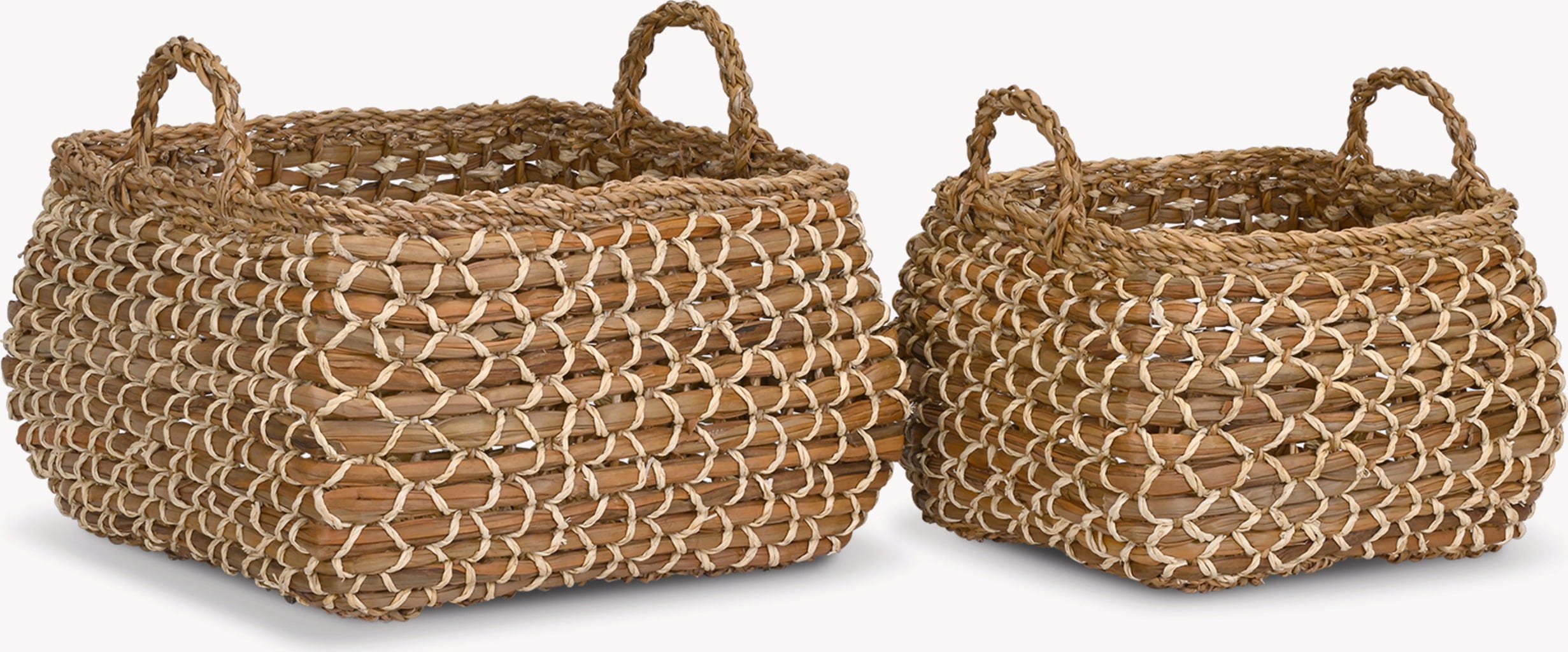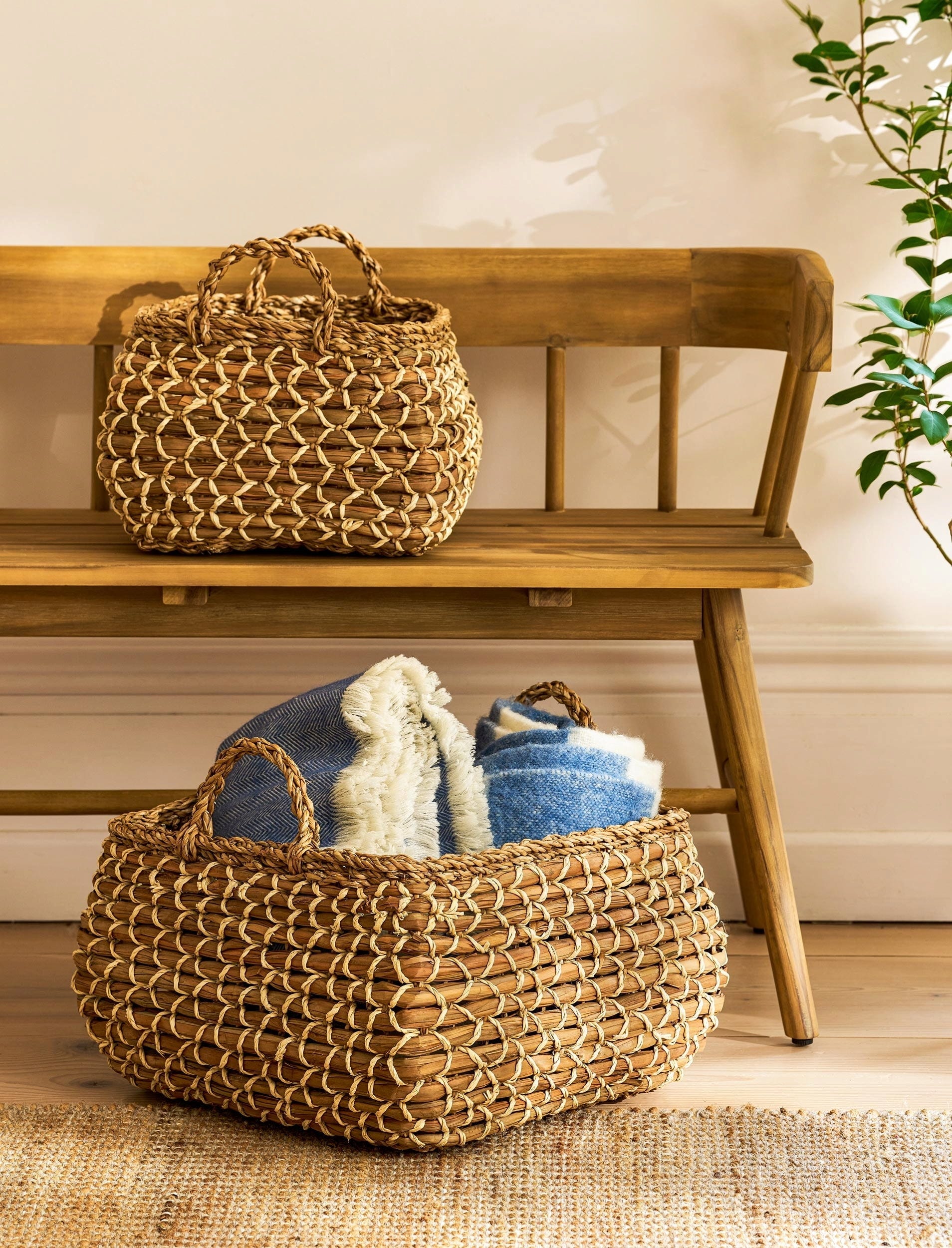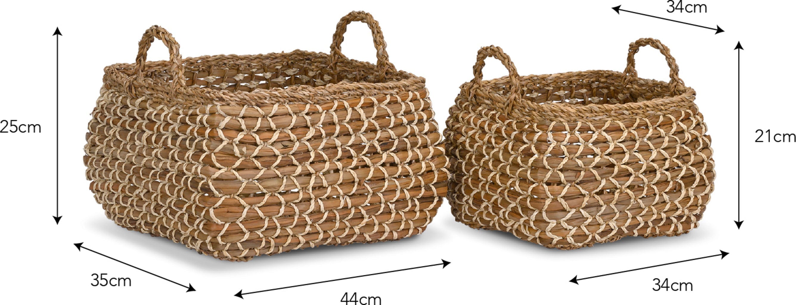 Ta komplet dveh košar je še posebej privlačen način za shranjevanje vsakdanjih predmetov, kot so kuhinjske krpe in brisače. Tako bo vaš dom vedno videti urejen, pomembne stvari pa boste imeli vedno pri roki.