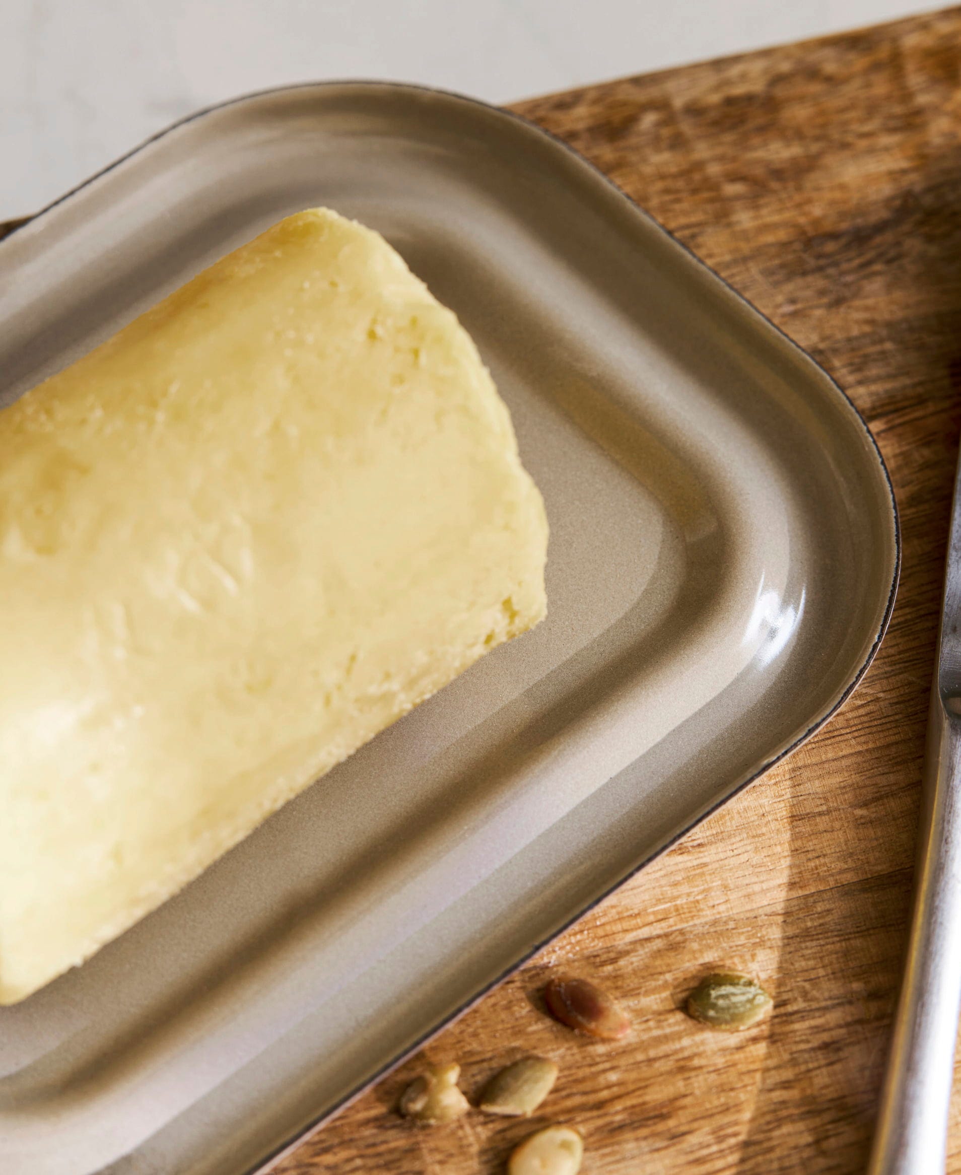 Ta posoda za maslo, izdelana iz trpežnega emajla v topli bež barvi, je idealna za ohranjanje svežine masla v hladilniku, shrambi ali neposredno na pultu, pa tudi za privlačno serviranje.