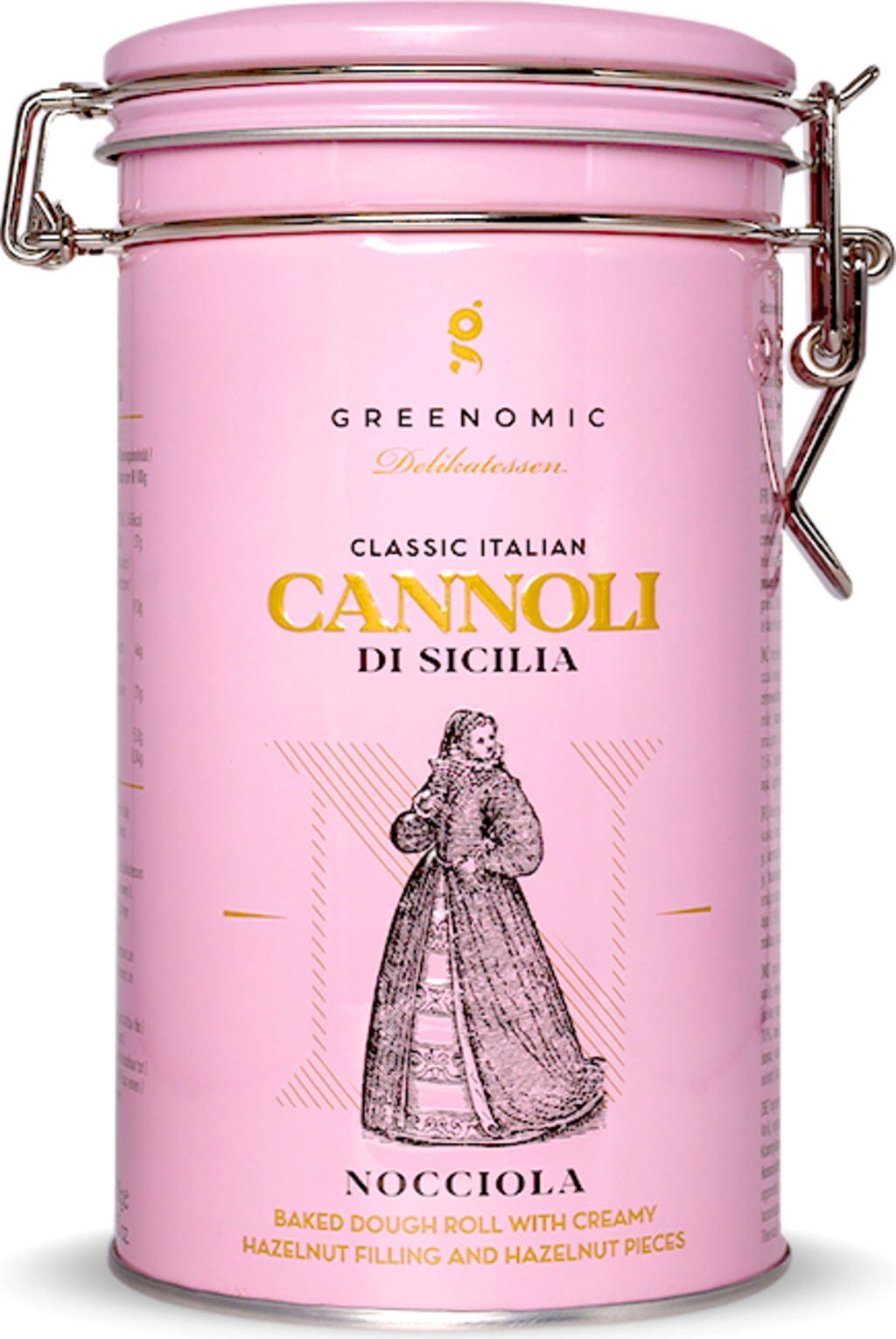 Cannoli so klasično sicilijansko pecivo s kremastim nadevom. Idealni so ob kavi ali kot slasten prigrizek kadarkoli. Čudovita pločevinka je opremljena s pokrovom, ki ga je mogoče tesno zapreti s sponko, s čimer se ohrani svežina in okus kanolijev.