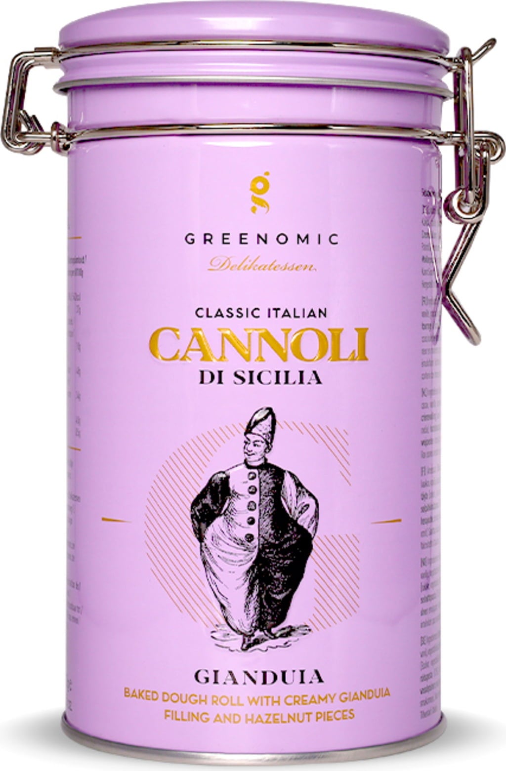 Cannoli so klasično sicilijansko pecivo s kremastim nadevom. Idealni so ob kavi ali kot slasten prigrizek kadarkoli. Čudovita pločevinka je opremljena s pokrovom, ki ga je mogoče tesno zapreti s sponko, s čimer se ohrani svežina in okus kanolijev.