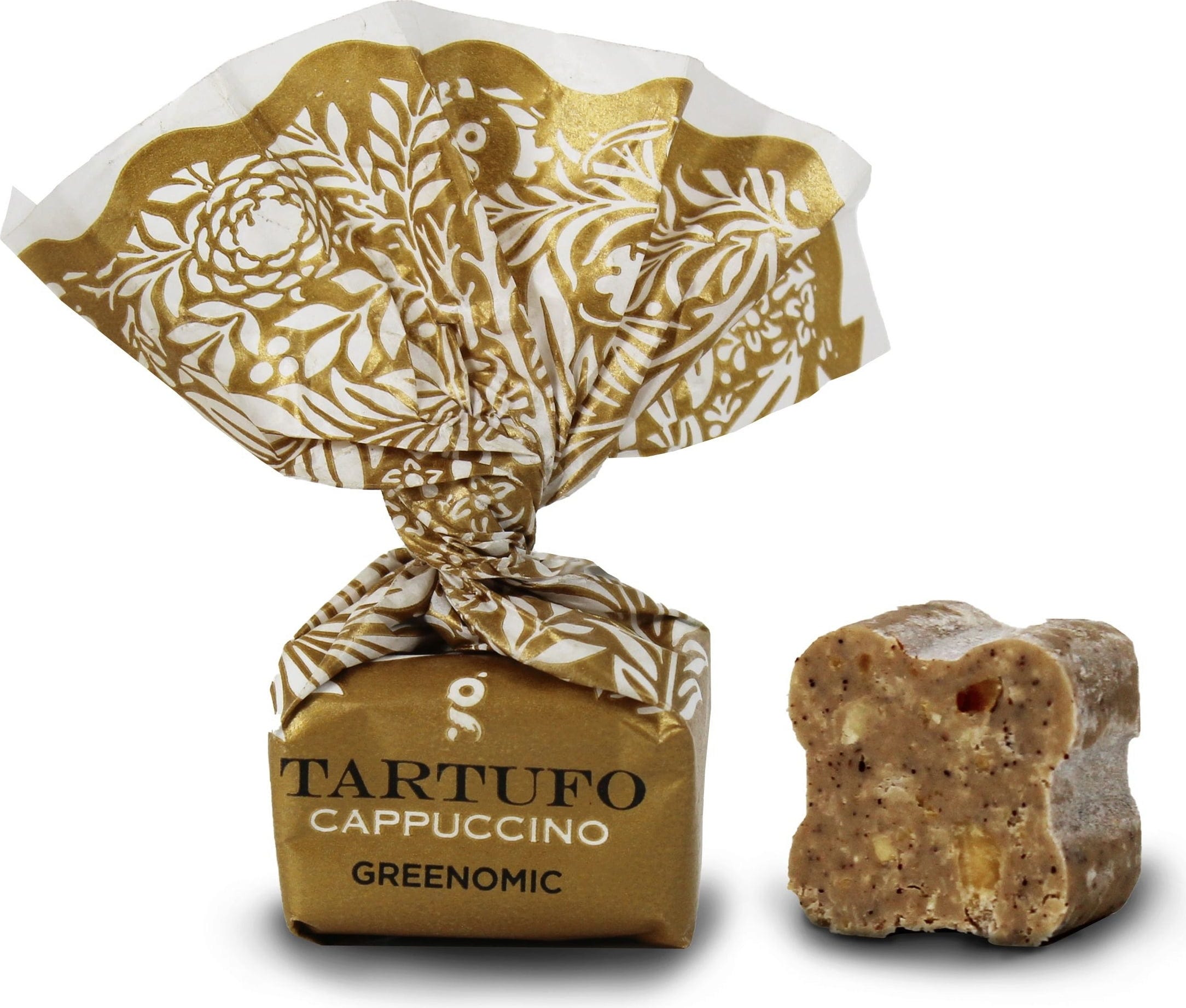 Uživajte v teh okusnih in edinstvenih čokoladah sami ali pa jih podarite svojim najdražjim. Tartufo Cappuccino sestavljajo bela čokolada, krepki lešniki iz Piemonta in najboljša kava Arabica, ki daje pralinejem poln kavni okus.