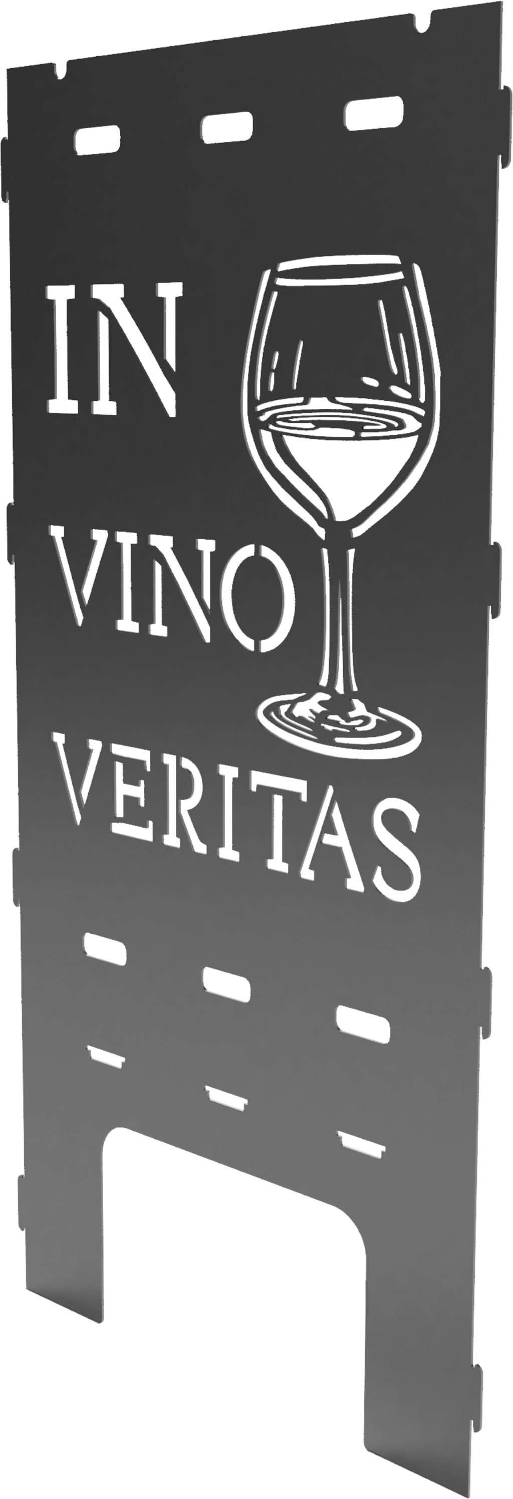 Ta jeklena stranska plošča navdušuje s svojim elegantnim napisom "In Vino Veritas" in je idealna za vse ljubitelje vina.