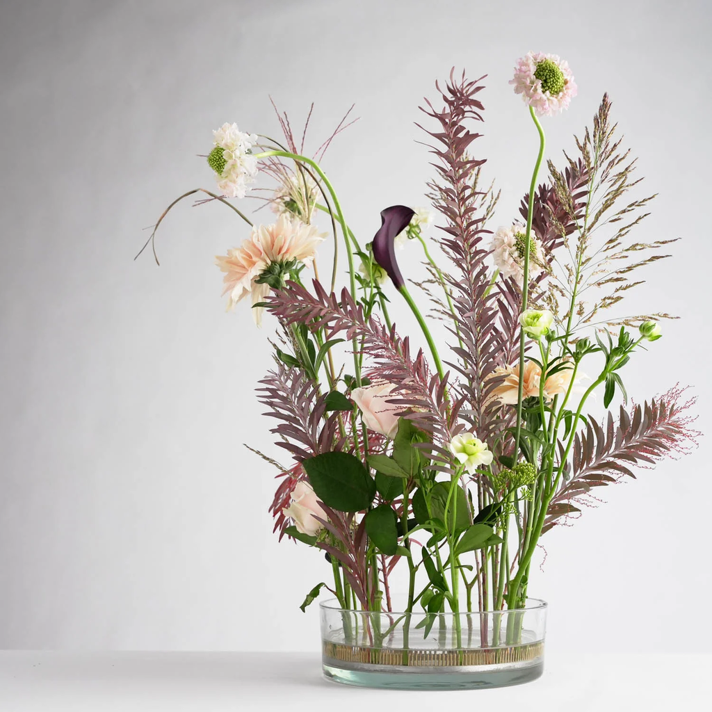 Ustvarjajte elegantne cvetlične aranžmaje z le nekaj stebli. Kenzan stojalo ponuja maksimalni nadzor in ustvarjalno svobodo. Okrogla oblika in trpežne bakrene konice omogočajo natančno postavitev in navdihujejo tako minimalistične kot umetniške kompozicije.