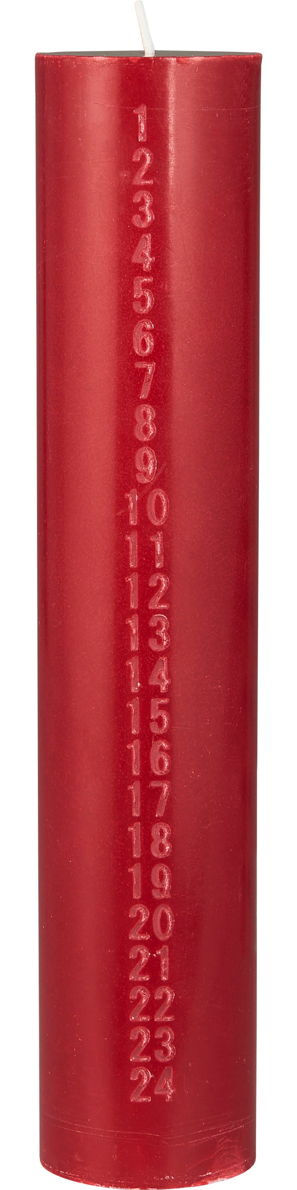 Ta praznična rdeča sveča je elegantna alternativa klasičnemu adventnemu koledarju in odličen način za ustvarjanje prazničnega vzdušja v predbožičnem času.