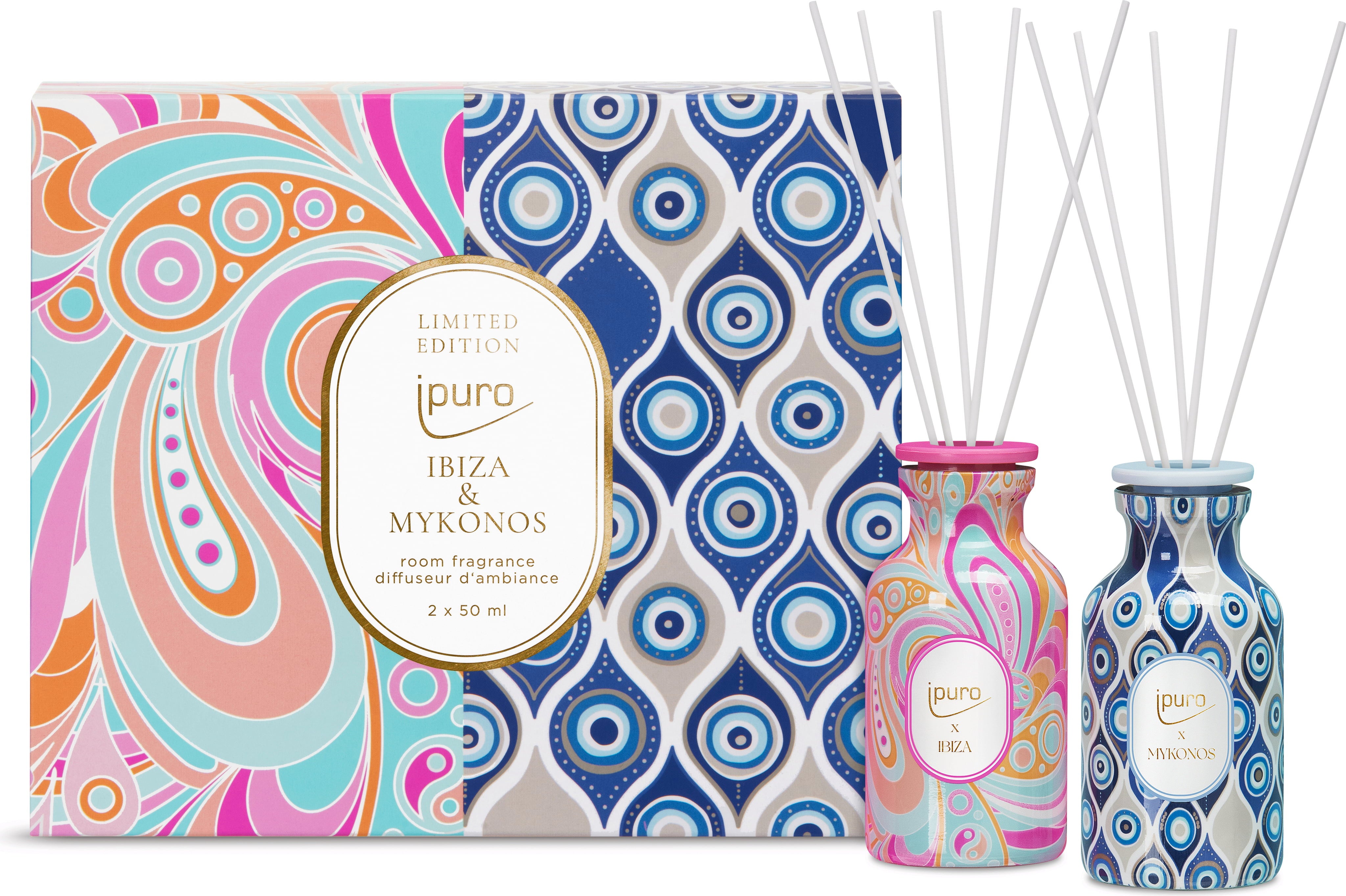 Ta set znamke ipuro vsebuje dve sobni dišavi, Ibiza in Mykonos, vsaka po 50 ml. Dve edinstveni poletni dišavi, ki v vaš bivalni prostor prinašata posebno svežino.